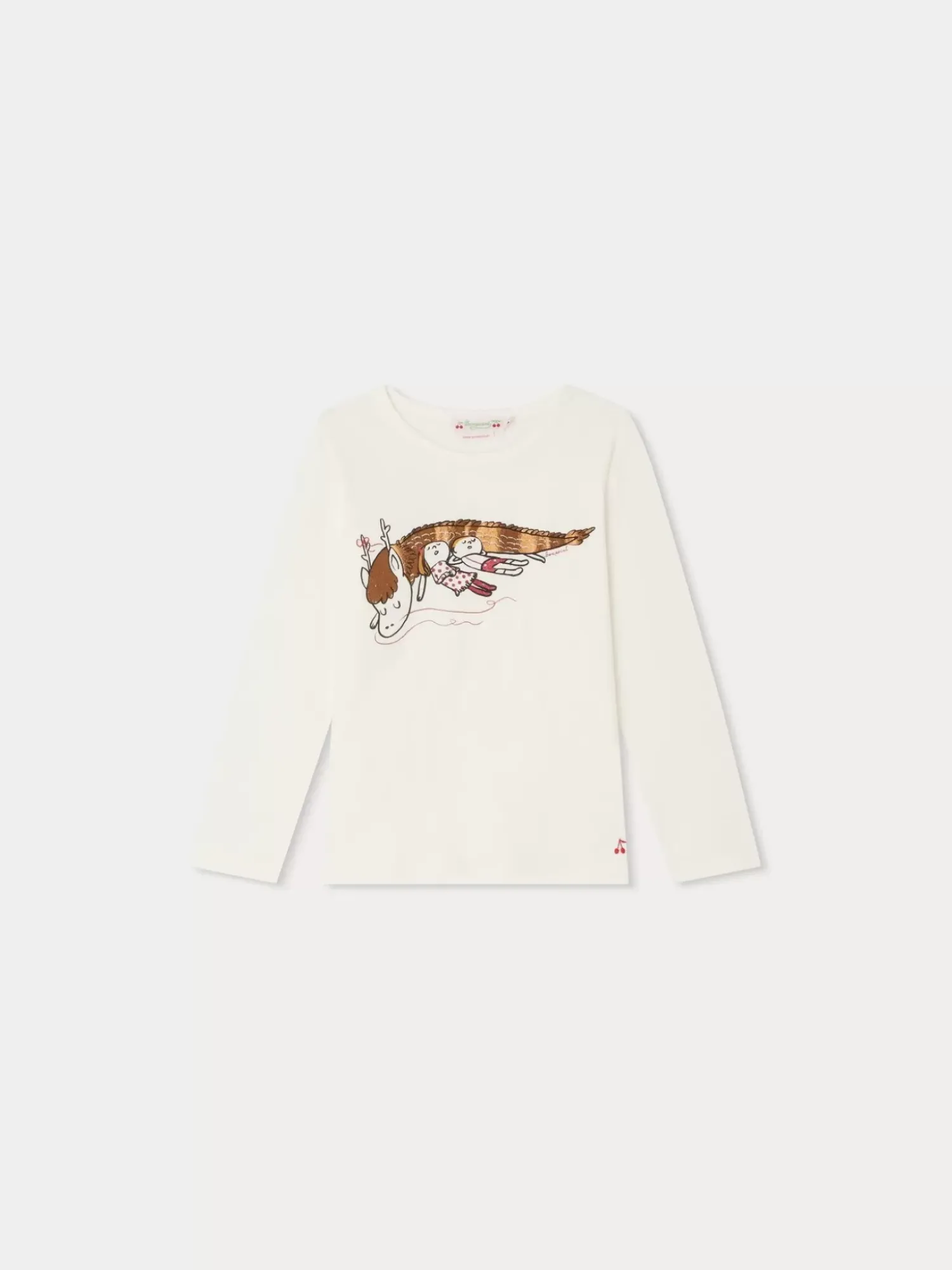 Little Girls Love This Long-Sleeved Tidjiane T-Shirt With Its Print Depicting Two Children And A Dragon Sleeping Peacefully. It Is Made From Organic Cotton.