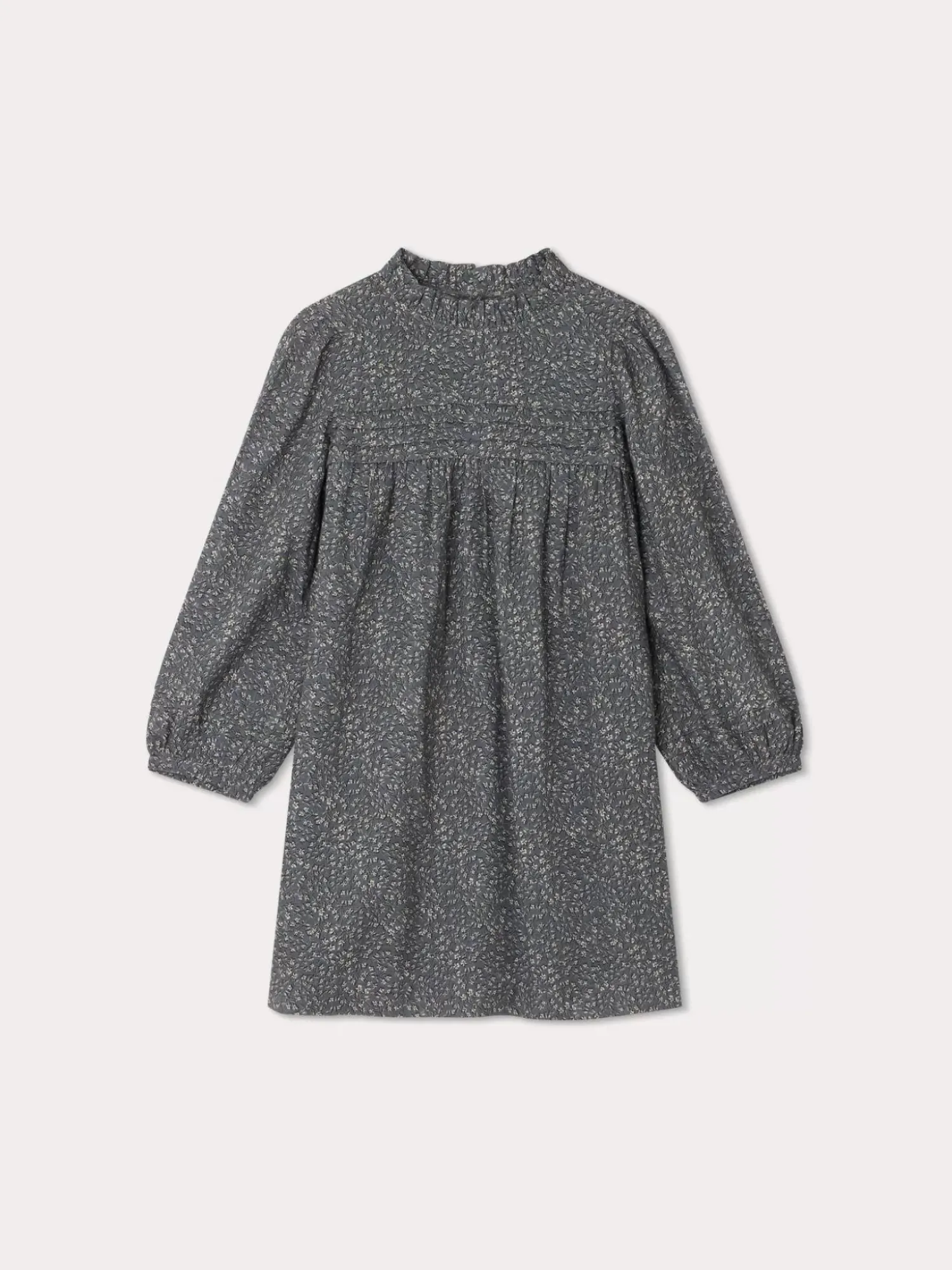 This Topaz Dress For Girls Is Made From Cotton With A Floral Print, Featuring A Pleated Collar And Long Puff Sleeves For Added Volume. It Is Enhanced By Gathering Under Soft Pleats At The Front.