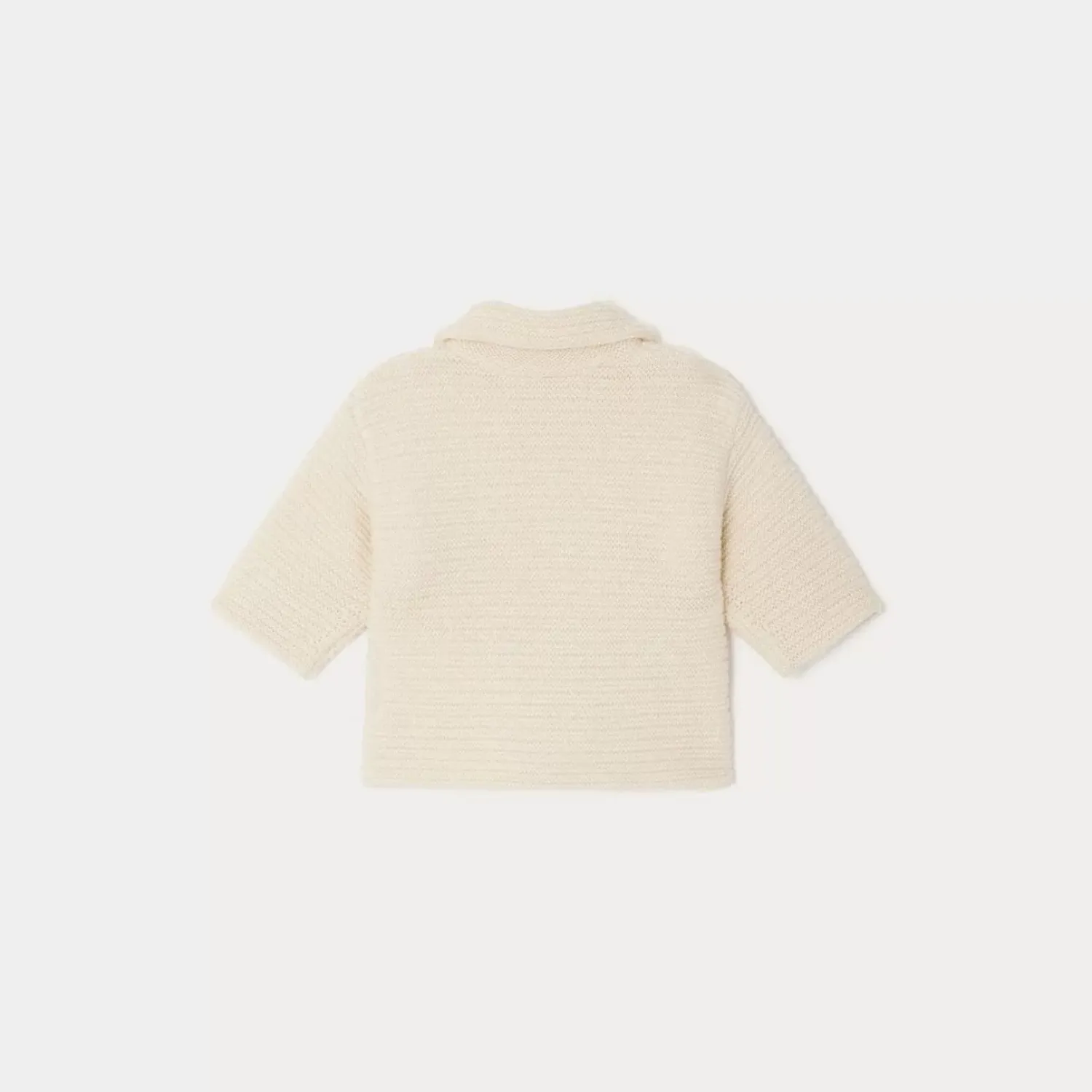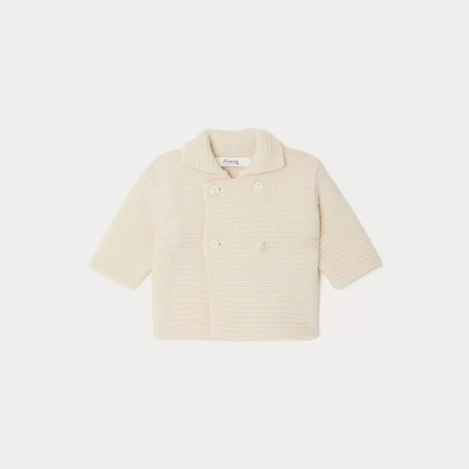 The Aalya Jacket For Baby Stands Out In A Crowd With Its Lapel Collar And Double-Breasted Buttoning. The Whimsical Fabric, With Alternating Garter And Stocking Stitch, Lends The Garment A Sailing Spirit.