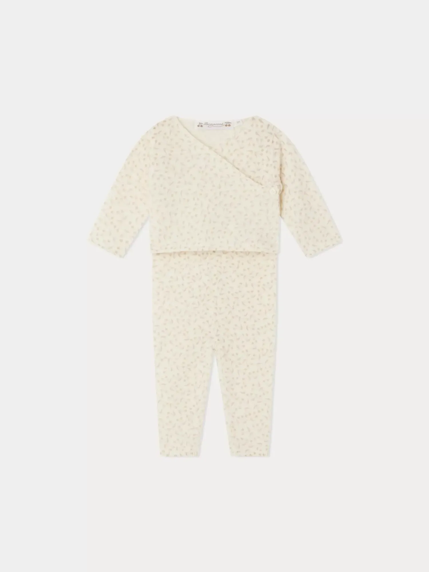 The House’S Cherries Are The Star Of This Adile Outfit For Baby, Suitable For Newborns. Made From Soft Wool, It Consists Of A Long-Sleeved Top With Pants.