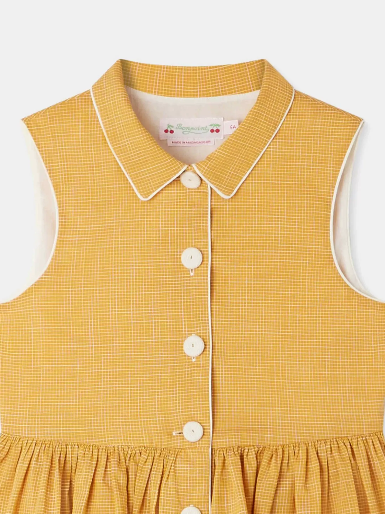 Full Of Charming Details, This Anne Shirt Dress For Girls Fastens At The Front With Five Large Fabric-Covered Buttons. The Shirt Collar And Armholes Of The Sleeveless Design Are Finished With Contrasting Piping.