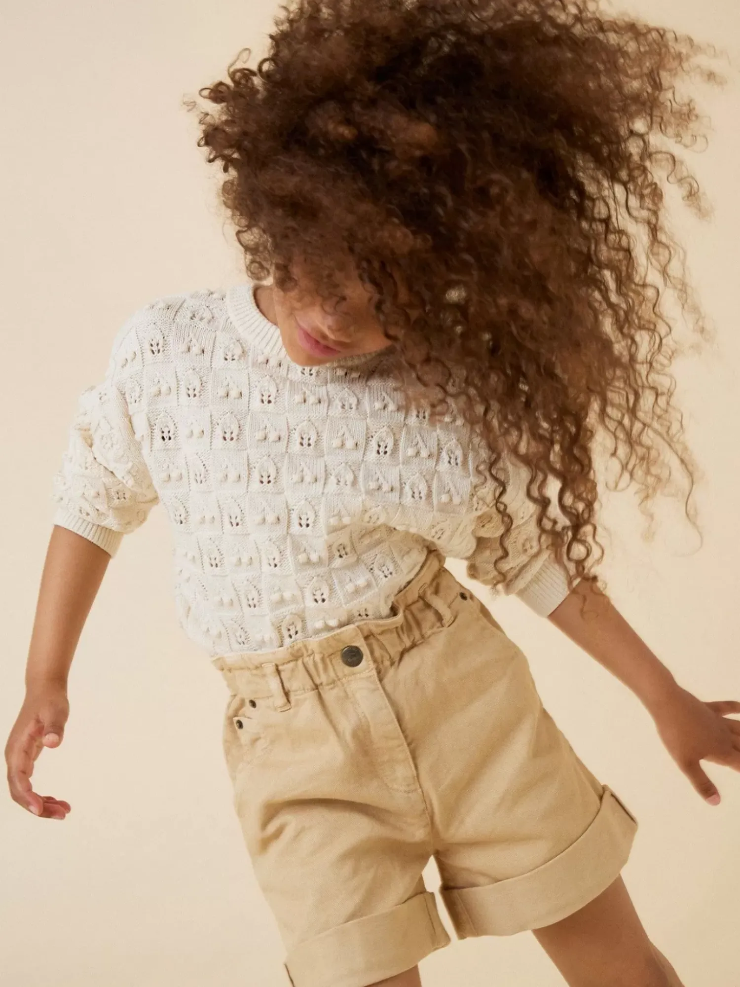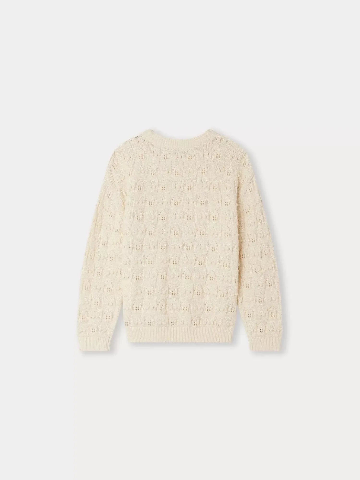 This Knitted Anumati Sweater For Girls Is Made Entirely From Organic Cotton. It Features Textured Cherries And Openwork Corn Cobs For Additional Charm.