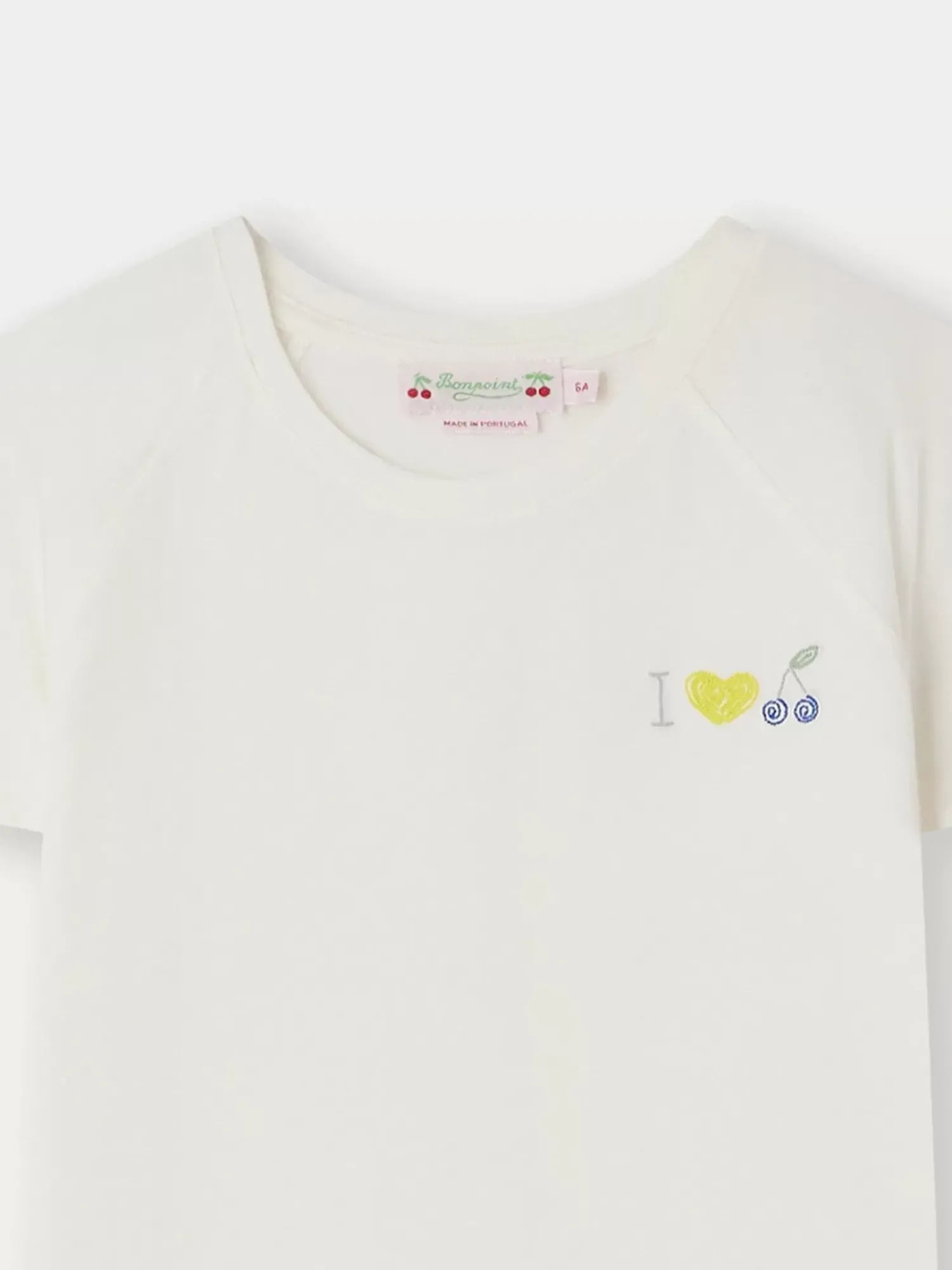 The Asmae T-Shirt For Girls Is Straight Cut With A Solid-Colored Base Creating An Elegant Understated Look. The Cheeky Stipple Stitch Design On The Chest Adds A Touch Of Color.