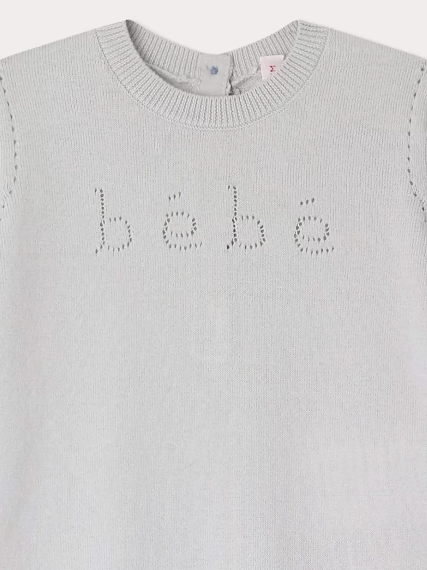 The Atilou Romper For Babies Features A Distinctive Inscription In Pointelle At The Front. This Solid-Colored, Long-Sleeved Design Is Made From Organic Cotton.