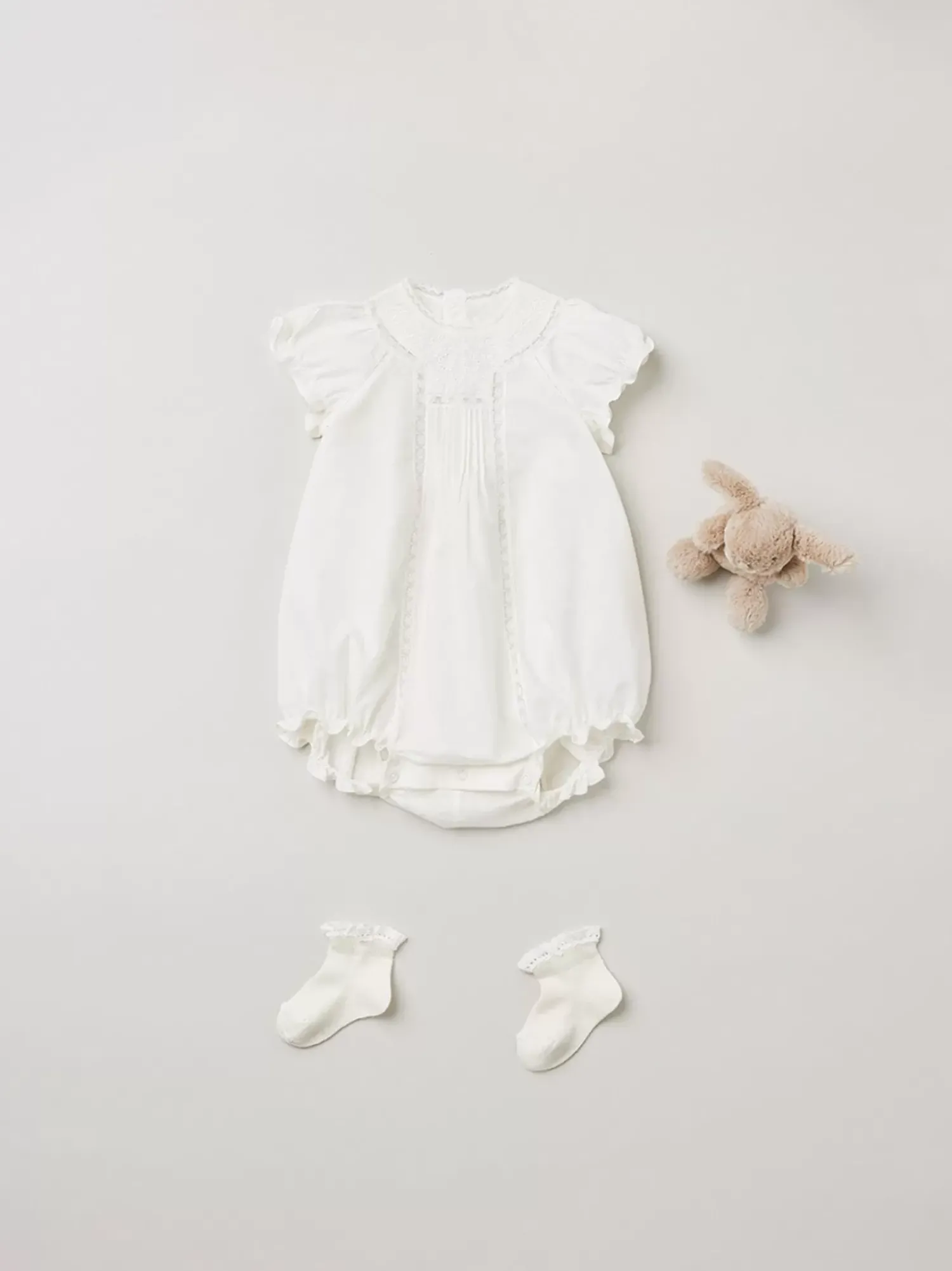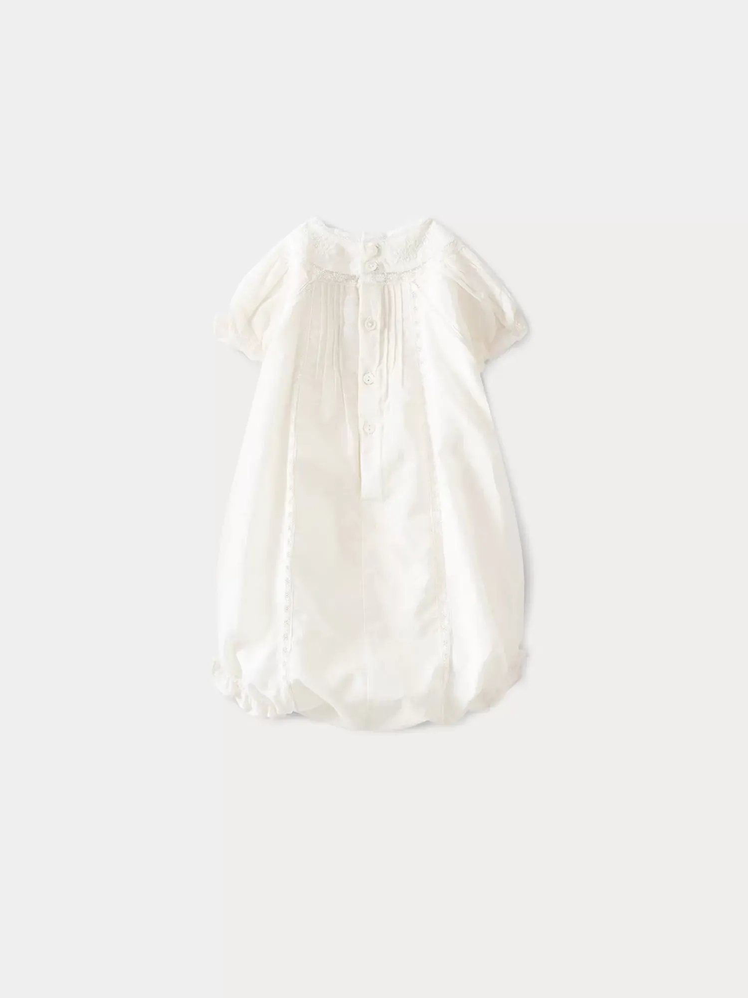 Made Of Comfortable, Lightweight Dobby Voile, This Lotti Romper For Baby Is Very Charming. The Embroidery And Lace Details Make This An Iconic Bonpoint Design.