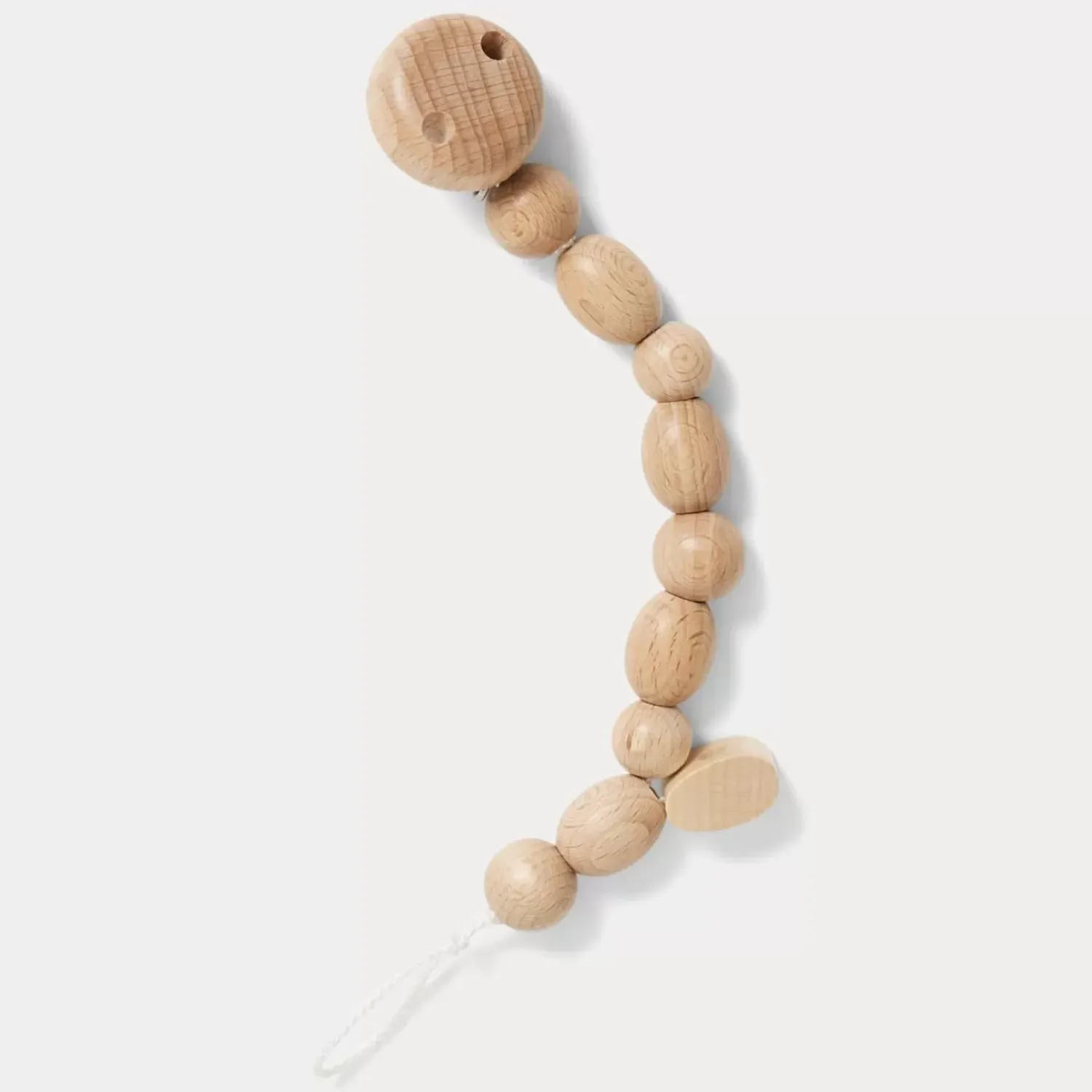 Made Of Smooth Wooden Beads In Round And Oval Shapes, The Bacil Pacifier Clip Is Fun For Baby To Touch. A Stainless Steel Clip Allows For Its Attachment, While A Nylon Thread Holds Together The Pacifier’S Beads.