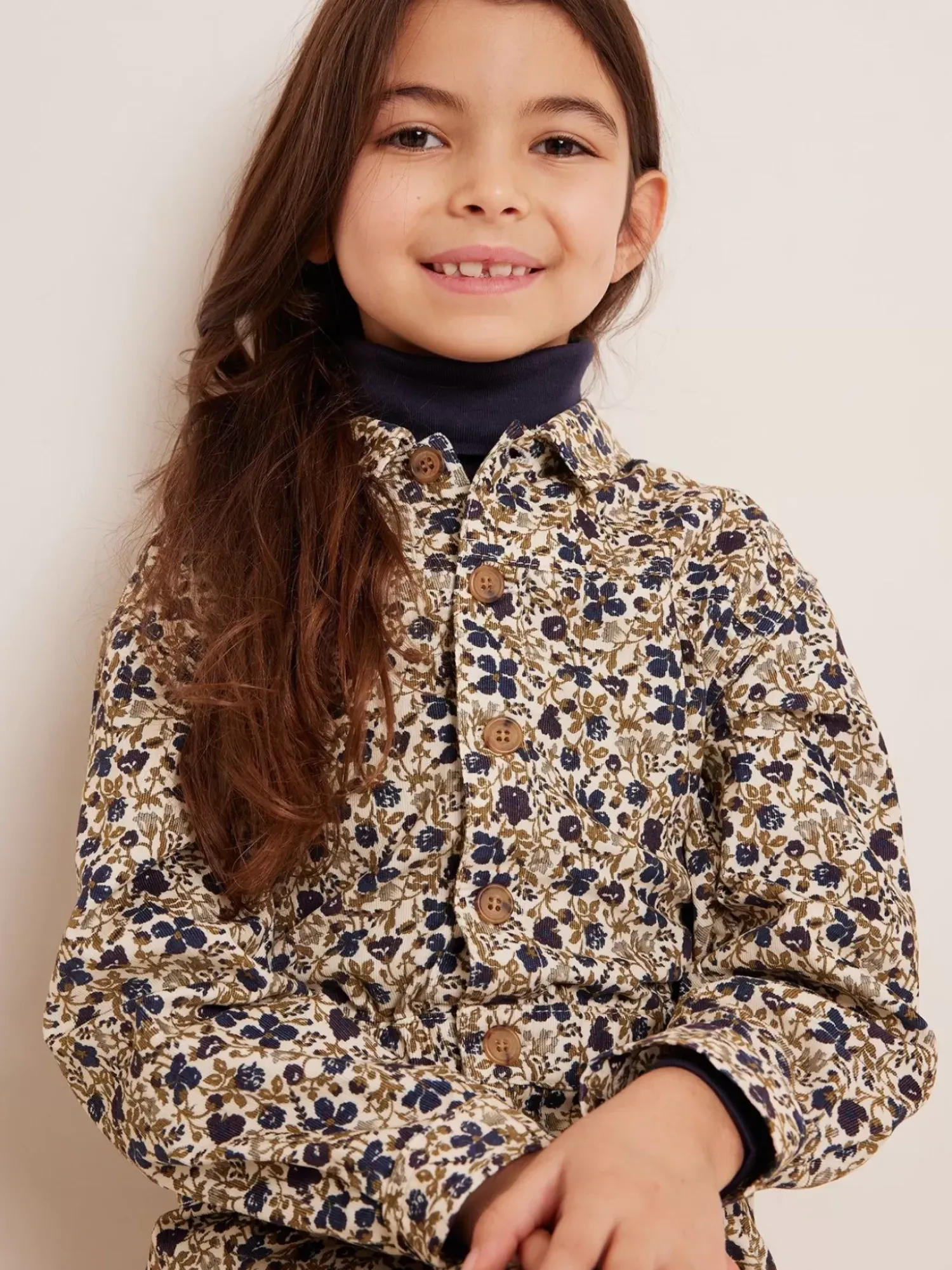 This Bertie Long Romper For Girls Is Made Of Corduroy Liberty Material With A Shirt Collar And Buttons At The Wrists. It Fastens With Five Buttons At The Front.