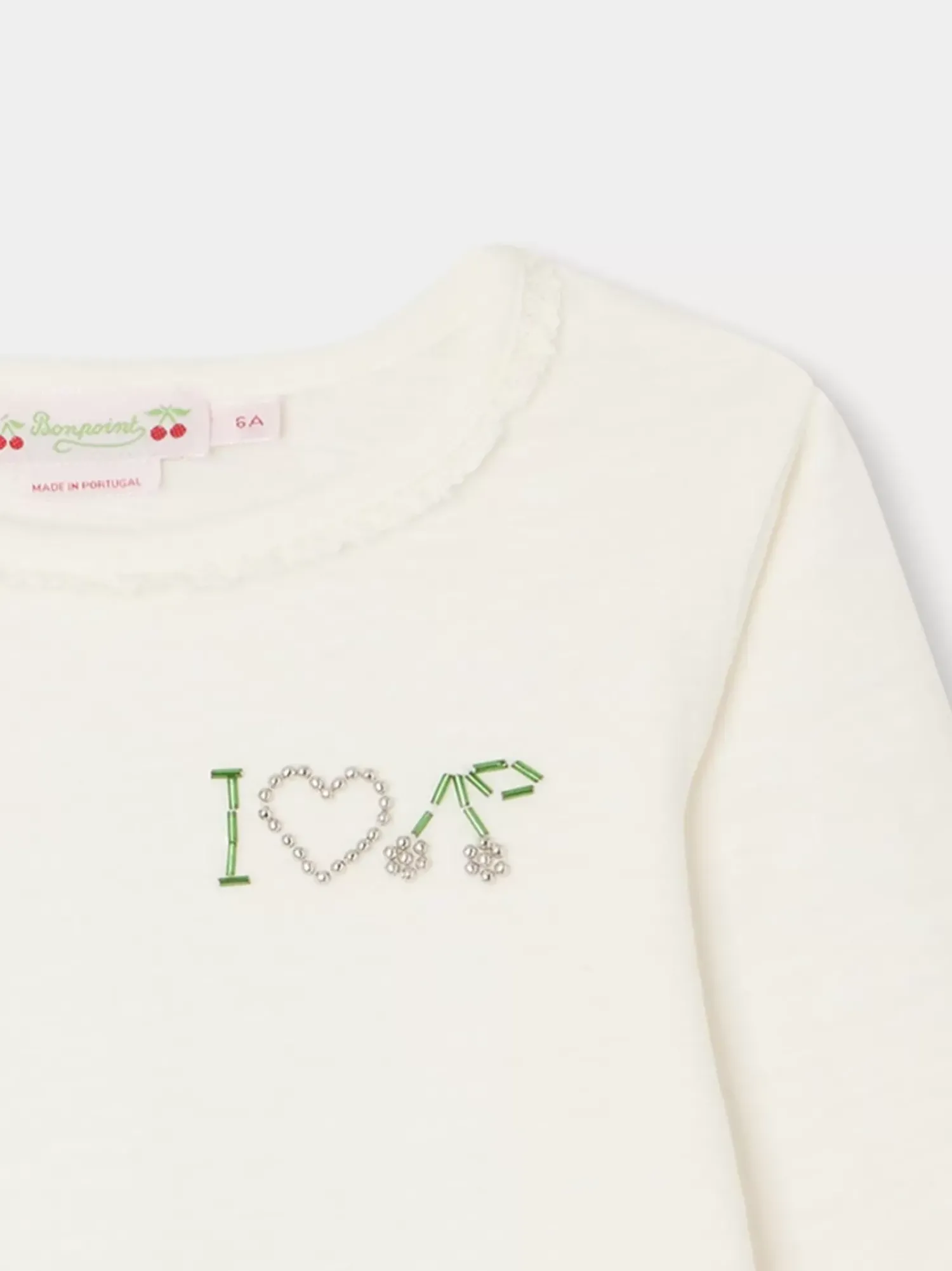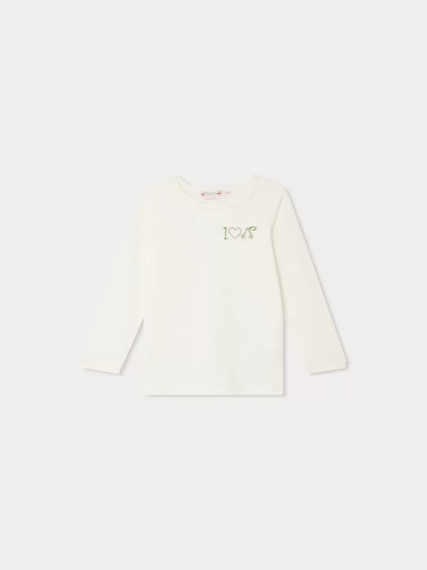 This Blanca T-Shirt For Girls Features A Playful Message On The Front Made With A Hand-Beaded Heart And Cherry. The Round Collar And Cuffs Are Enhanced With A Trendy Fringe Effect.