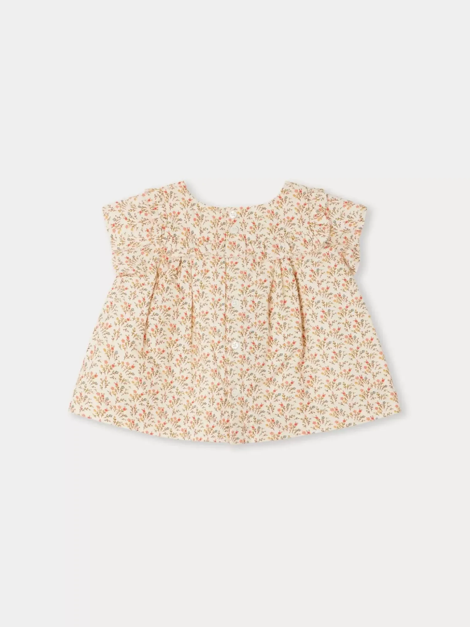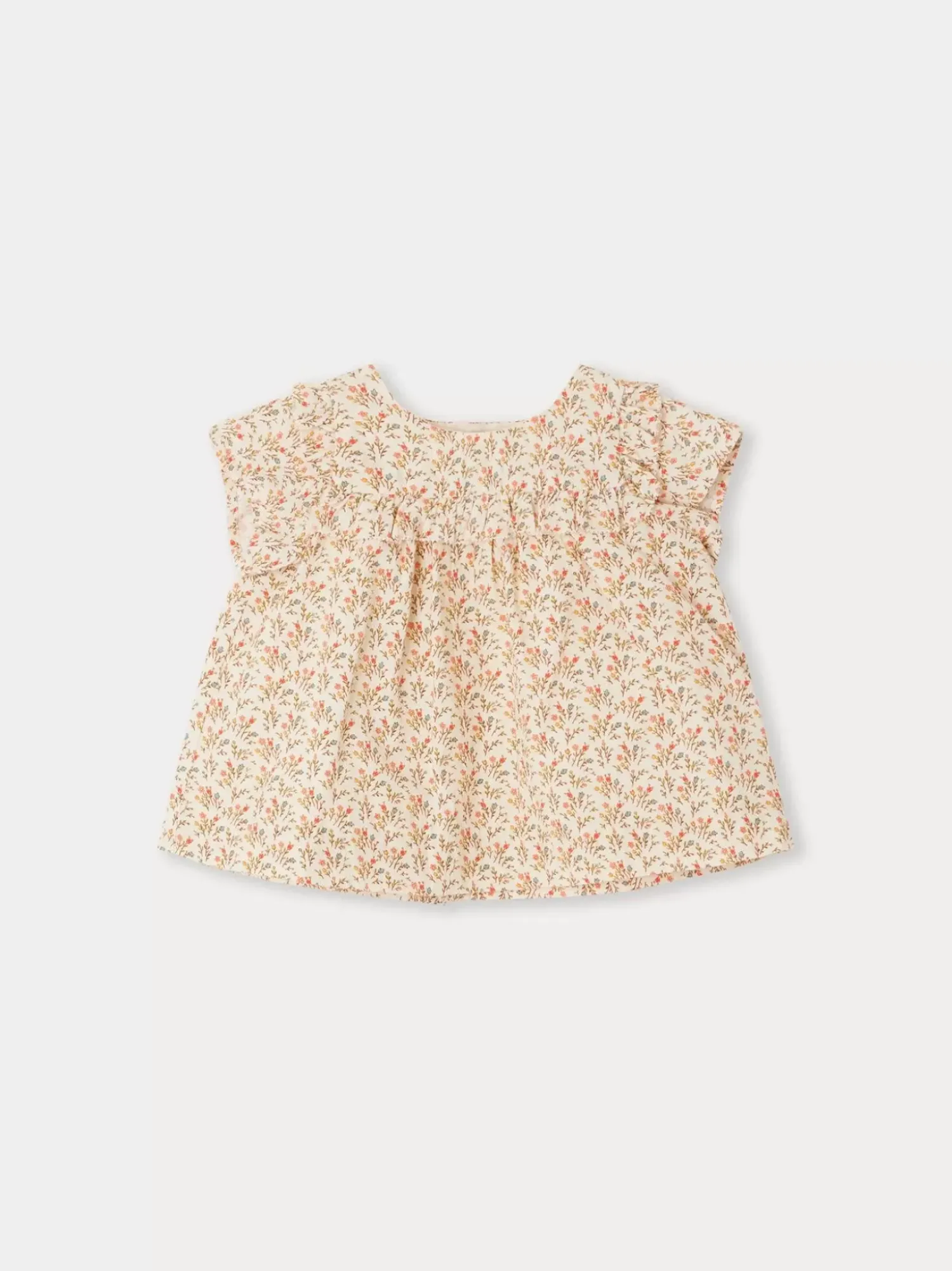 En Coton Biologique, La Blouse Luni Pour Bébé Possède Un Charme Unique Avec Son Imprimé Intégral D’Inspiration Végétale. Le Volant Sous L’Encolure S’Agrémente D’Une Délicate Finition Festonnée.