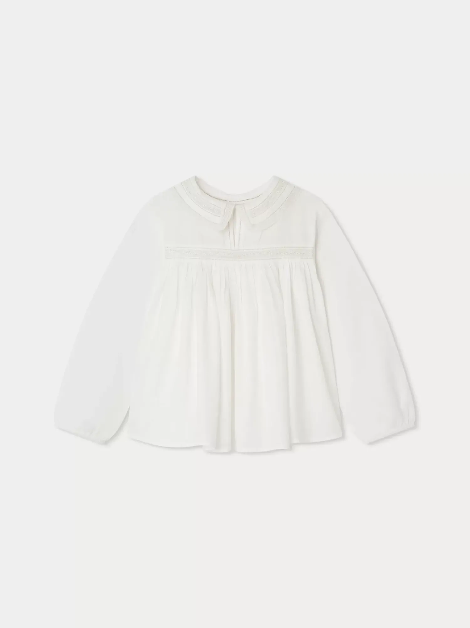 Rehaussée D’Entre-Deux De Dentelle, Cette Blouse Tate Pour Fille Se Ferme Par Un Bouton Discret Placé À L’Avant Sous Le Col. Ses Fronces Sous Le Buste Lui Donnent Un Joli Volume.