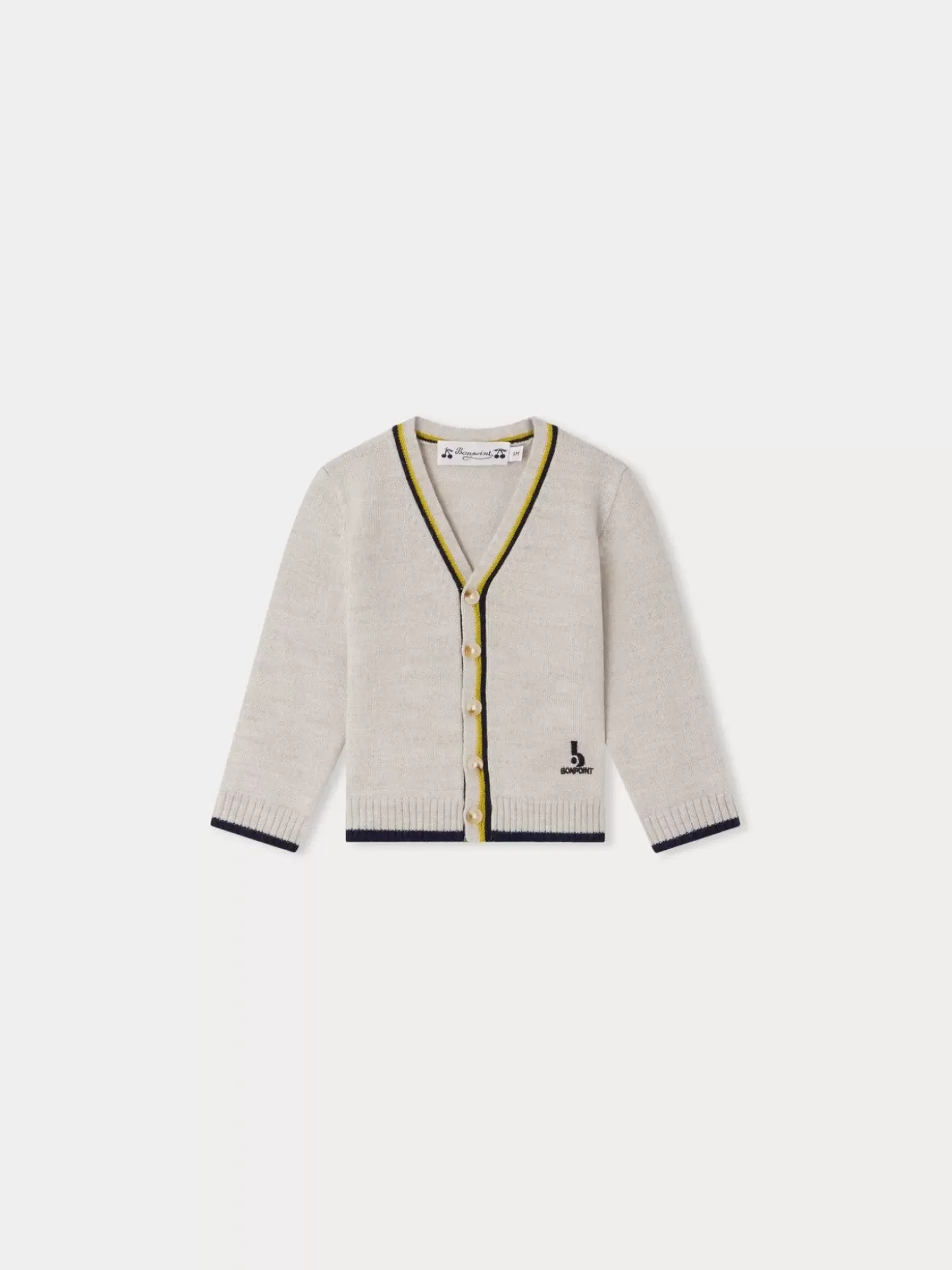 Le Cardigan Teotim Pour Bébé Est Confectionné En Laine Certifiée, Assurant Le Bien-Être Animal. Ses Délicates Rayures Colorées Ajoutent Une Touche Rétro, Tandis Qu’Un Logo Bonpoint Est Brodé À L’Avant.