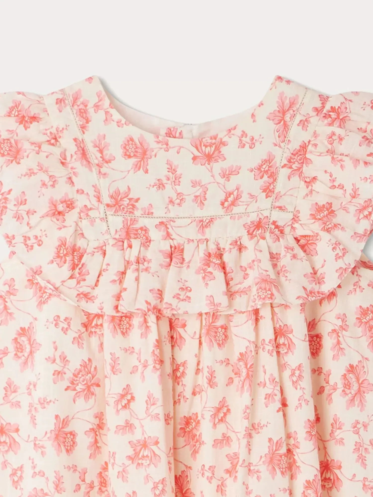 The Flared Charlyne Special-Occasion Dress Is Made From Organic Cotton And Features A Gorgeous Monochrome Floral Print. The Ruffle Collar Of This Sleeveless Design Is Adorned With Delicate, Open-Work, Ladder-Stitch Embroidery.