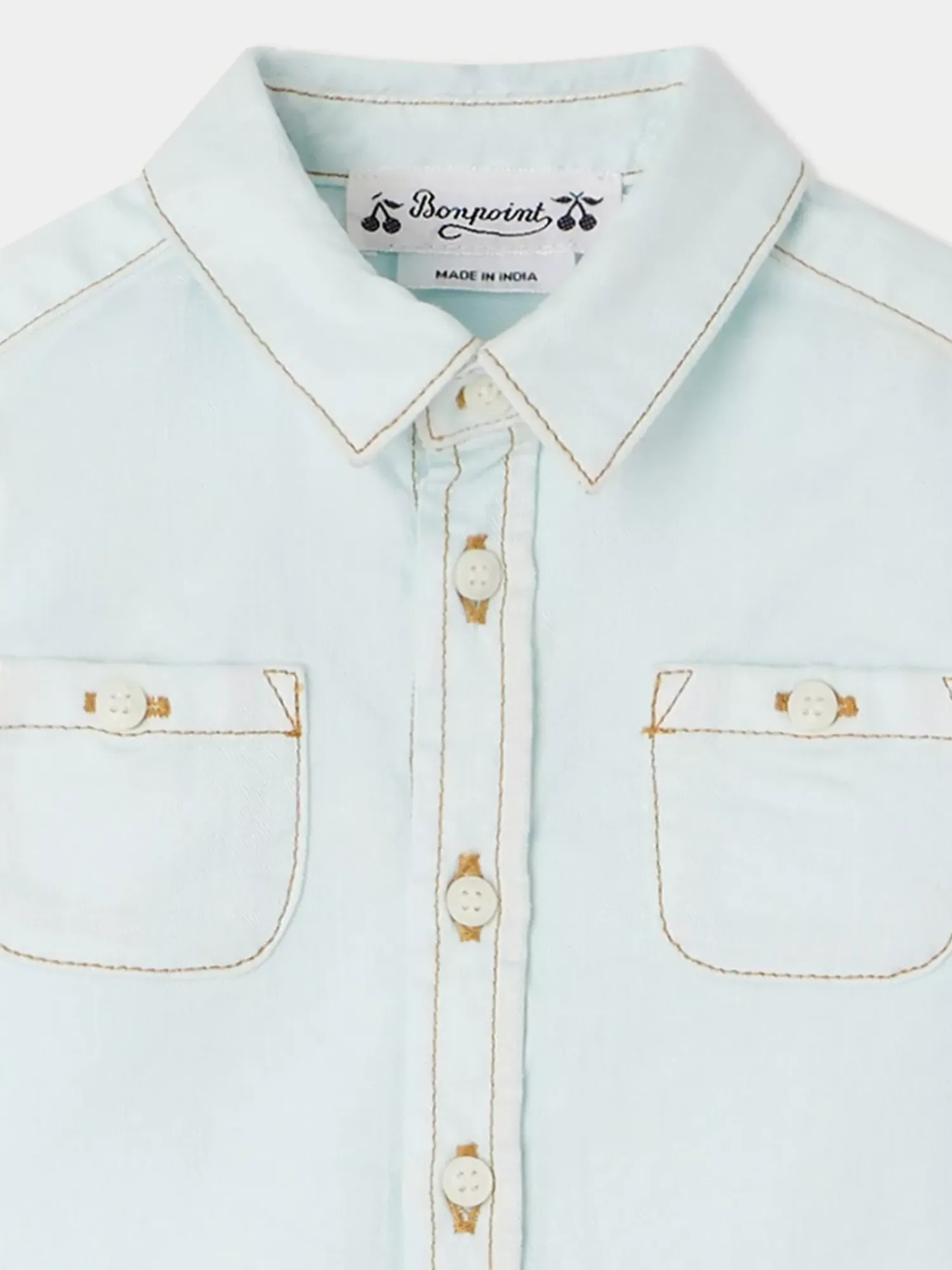 Bonpoint Chemise Mico Bleu Aqua |Newborn & Baby Tops