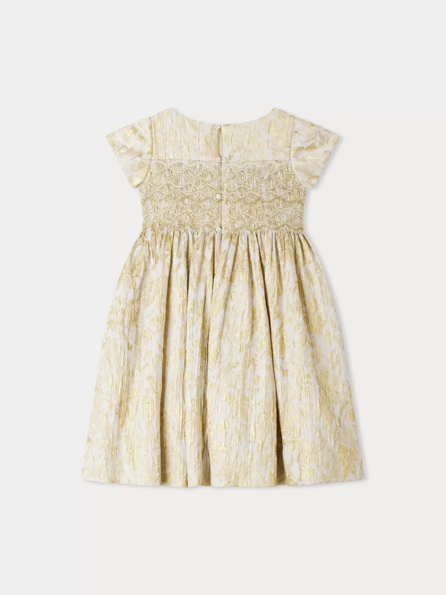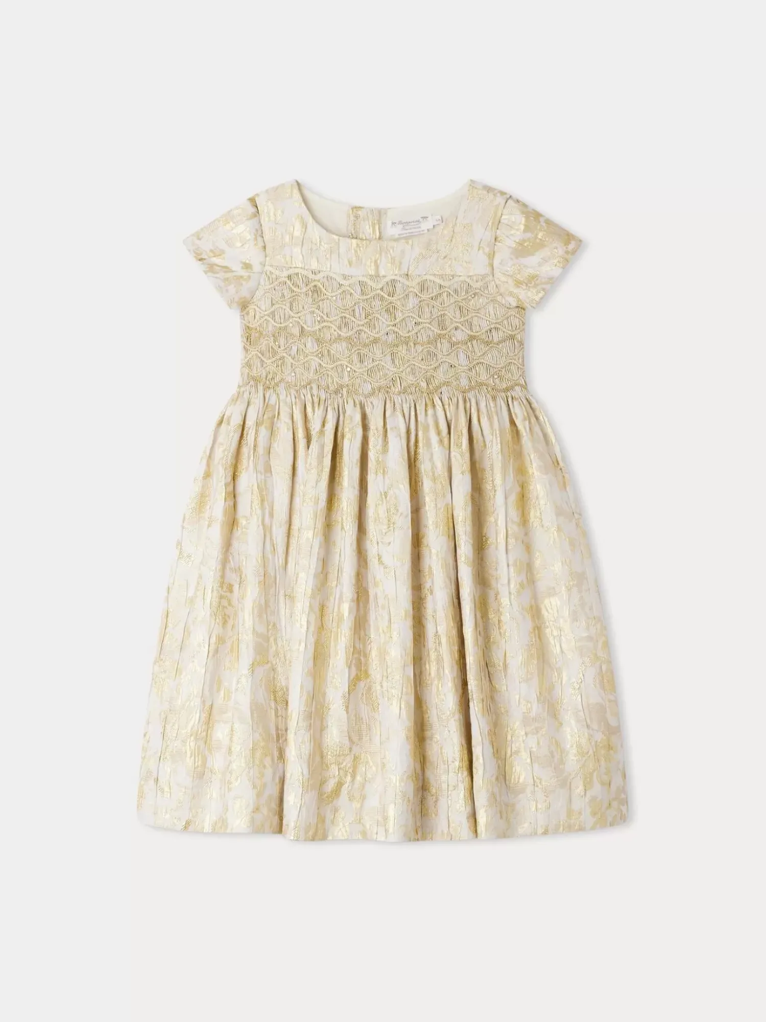This Eye-Catching Comtesse Dress For Girls Features Elegant Hand-Embroidered Smocking On The Chest. With Its Rhinestone Details And Metallic Accents, It Is The Perfect Embodiment Of A Princess Dress.