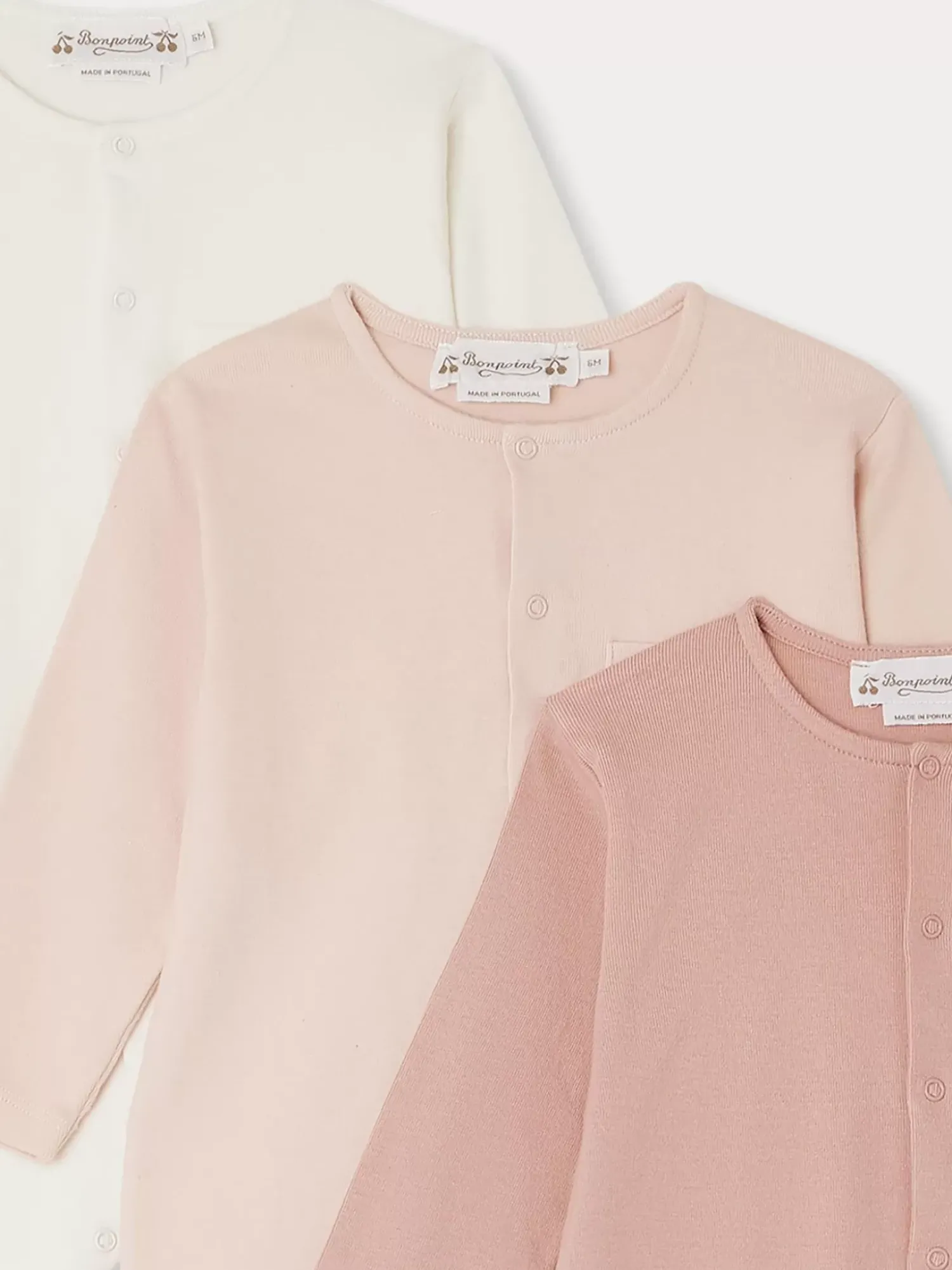 This Set Of Cotton-Ribbed, Footed Cosima Pajamas Come In 3 Solid-Colored Pieces In Assorted Colors. Suitable For Toddlers, They Have Snap Buttons Down The Front.
