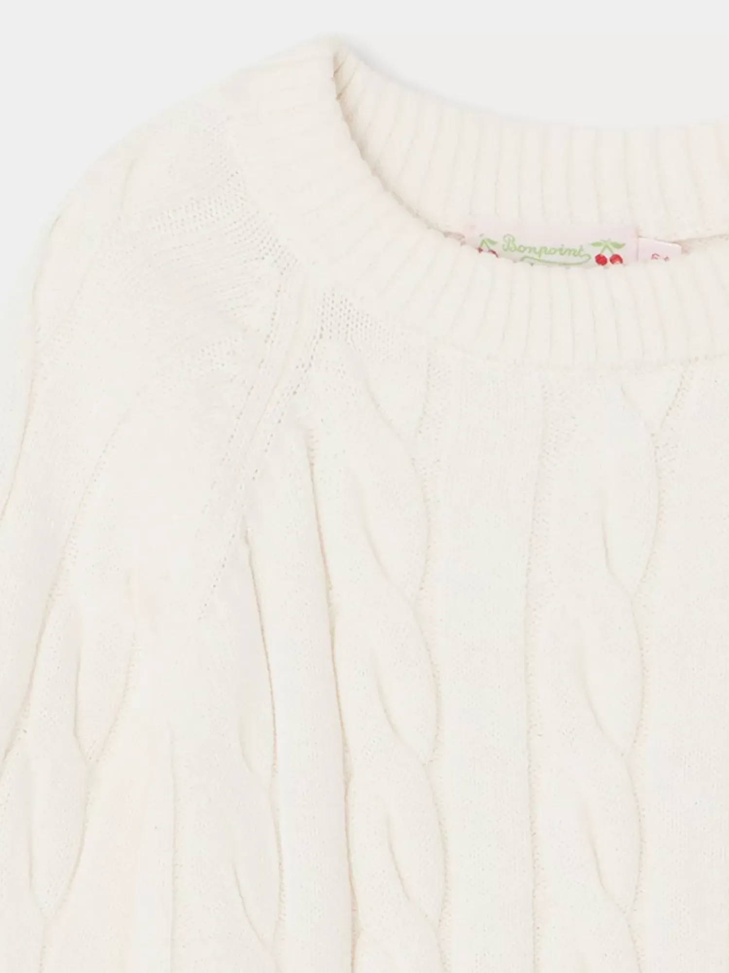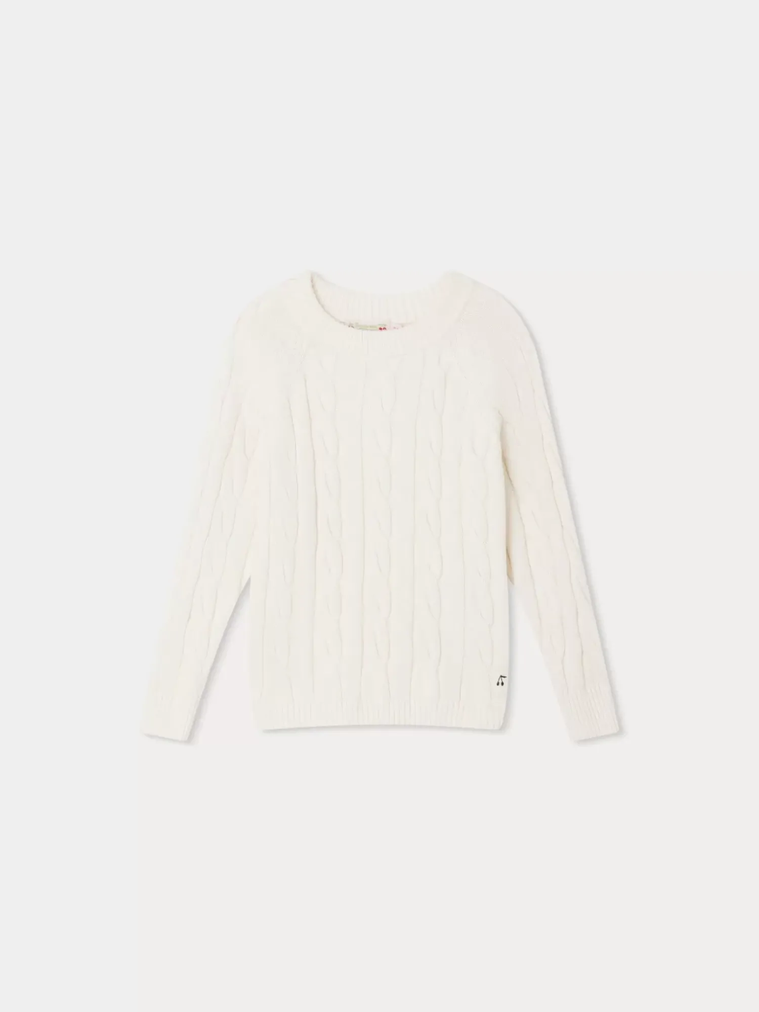 Made From Cotton And Cashmere, The Dalton Sweater For Girls Features A Ribbed Cable Knit. This Mid-Season Design Is Signed With A Small, Contrasting Embroidered Cherry.