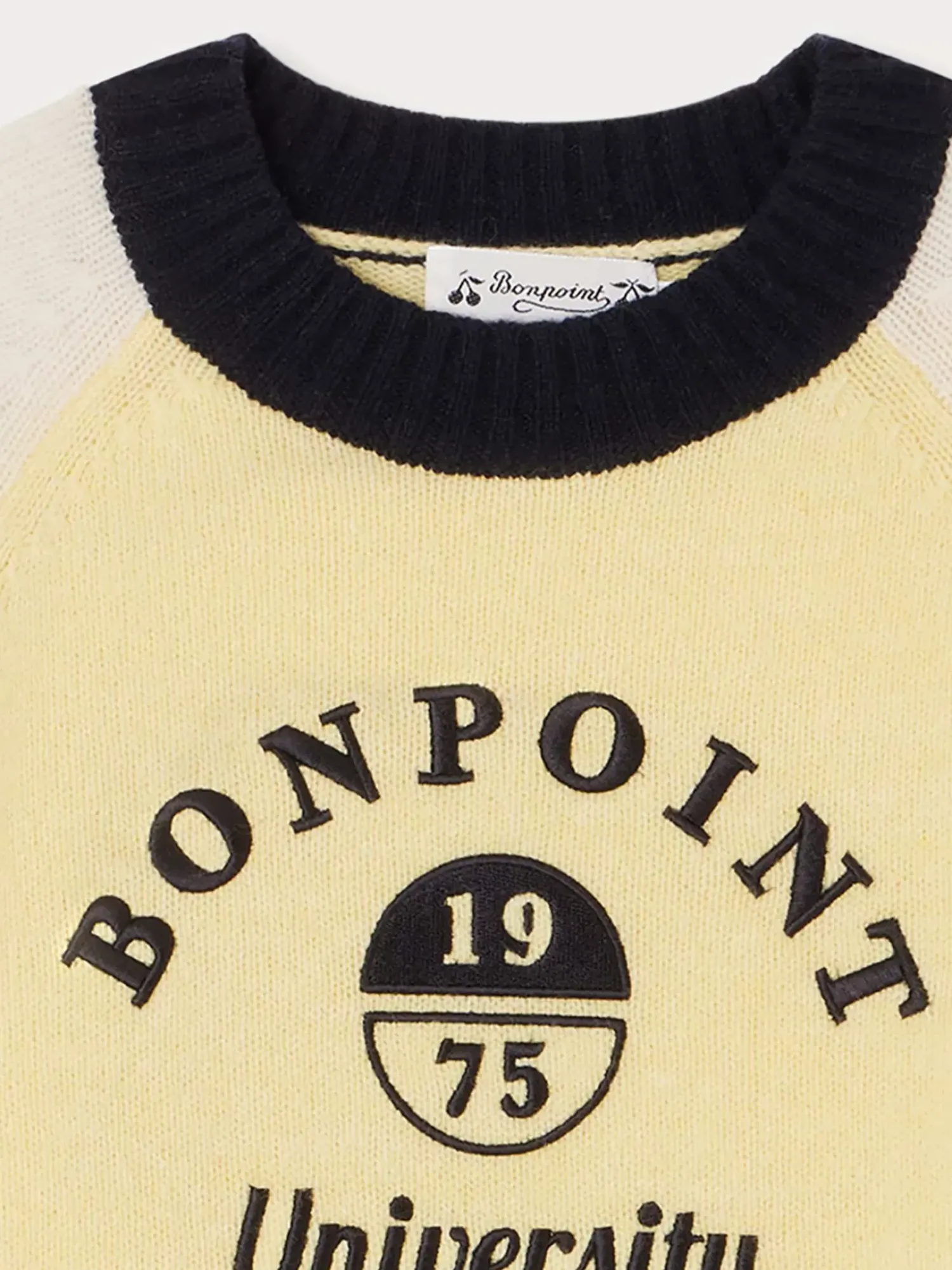 The Damian Sweater For Boys Takes Inspiration From College Style With Its Large Contrasting Embroidered Logo At The Front. Long Raglan Sleeves Have A Contrasting Color For Added Originality.