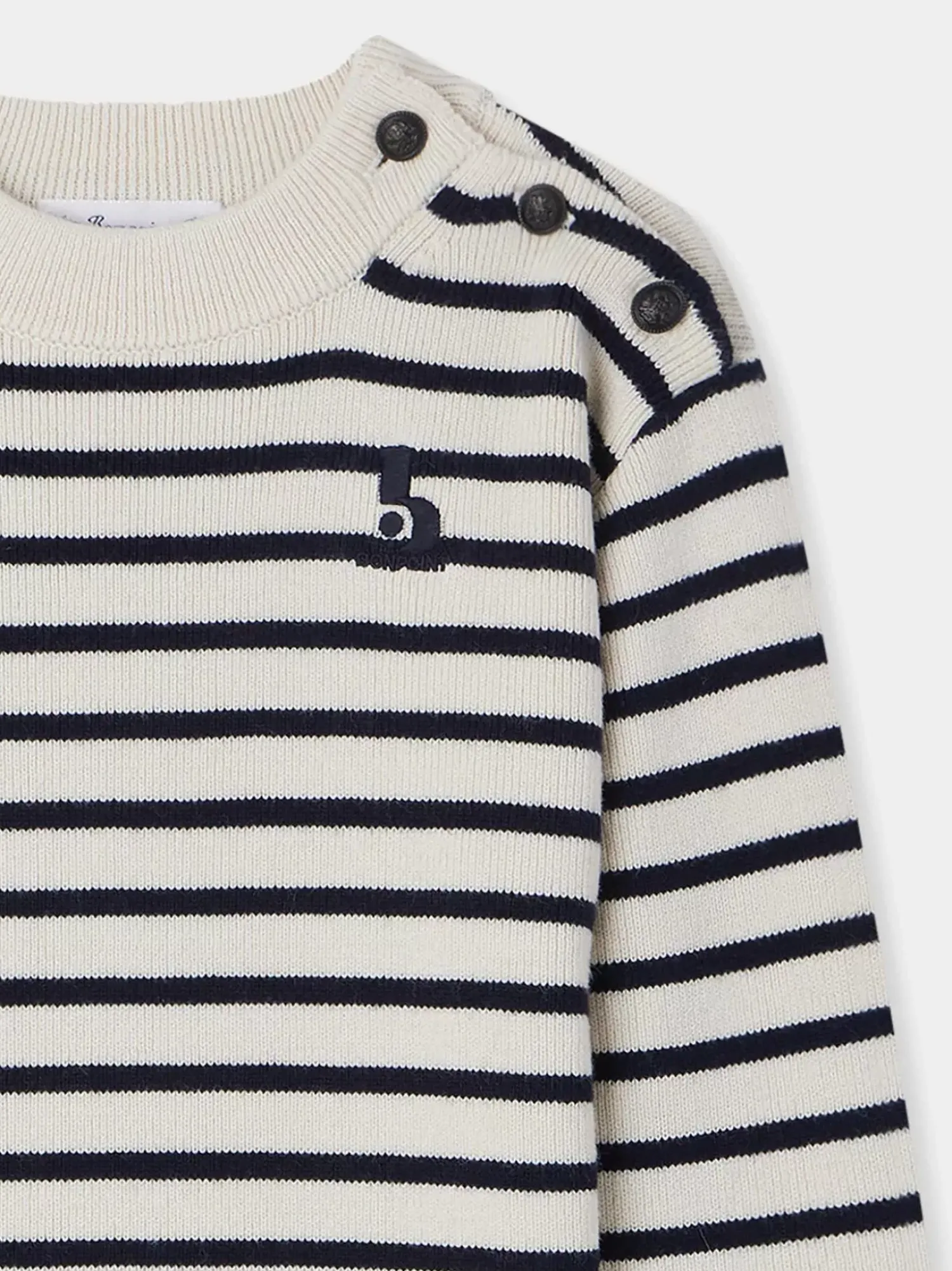 The Dantes Sweater For Boys Brings To Mind A Sailor Style With Its Delicate Horizontal Stripes. The Bonpoint Logo Is Embroidered On The Chest In A Matching Color.