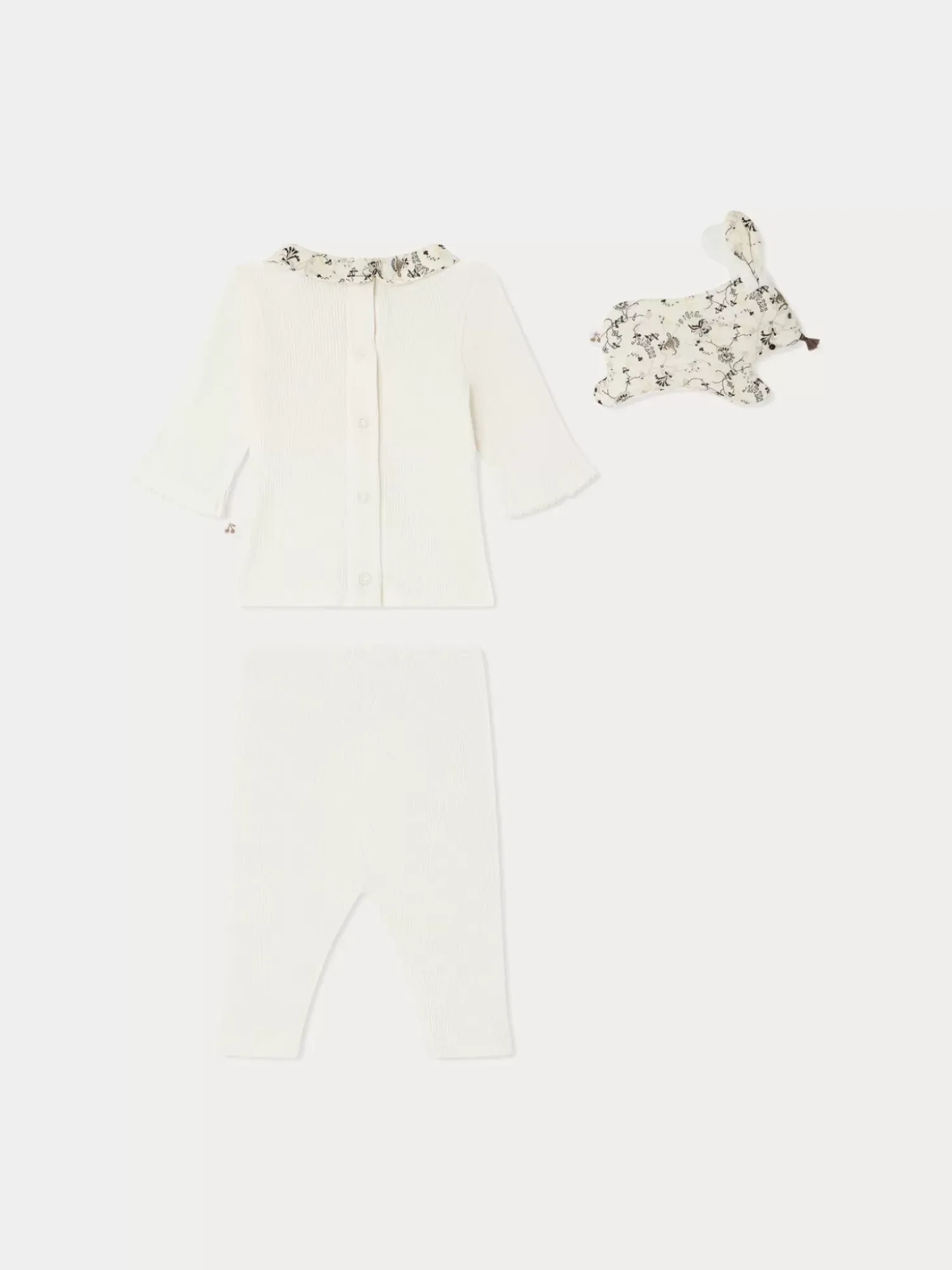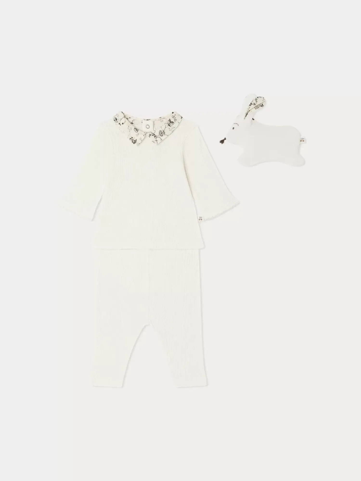 This Denise Set For Baby Consists Of A Ribbed Knit Long-Sleeved Top And Pants, As Well As A Bunny Stuffed Animal. All The Pieces Are Made From Certified Organic Cotton.