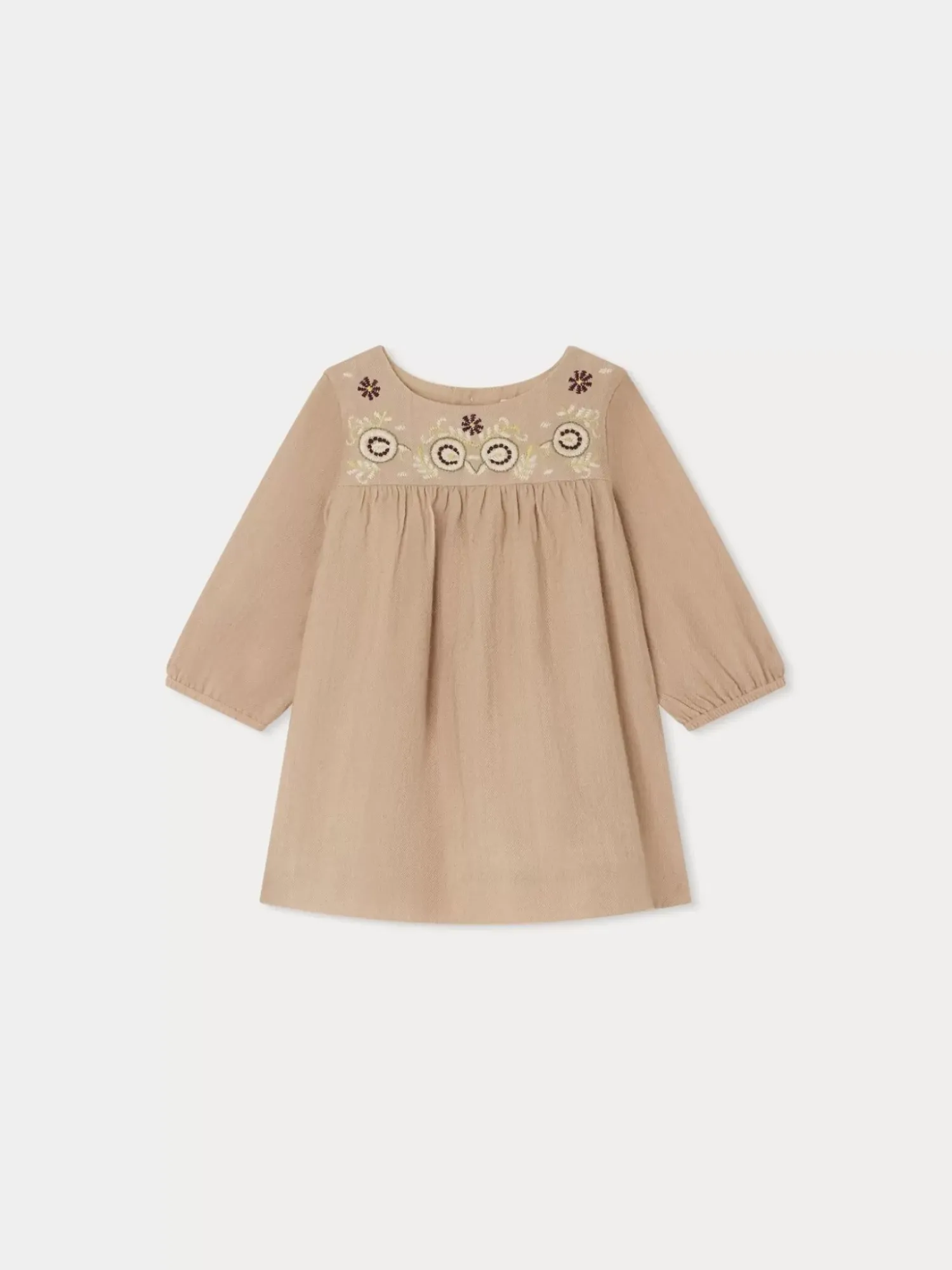 The Dipiki Dress Is A Perfect Example Of Bonpoint Skilled Workmanship With Its Colored Embroidered Flowers Around The Neck. Gathering Below The Yoke Lends A Fluid Effect To Its Flared Cut.