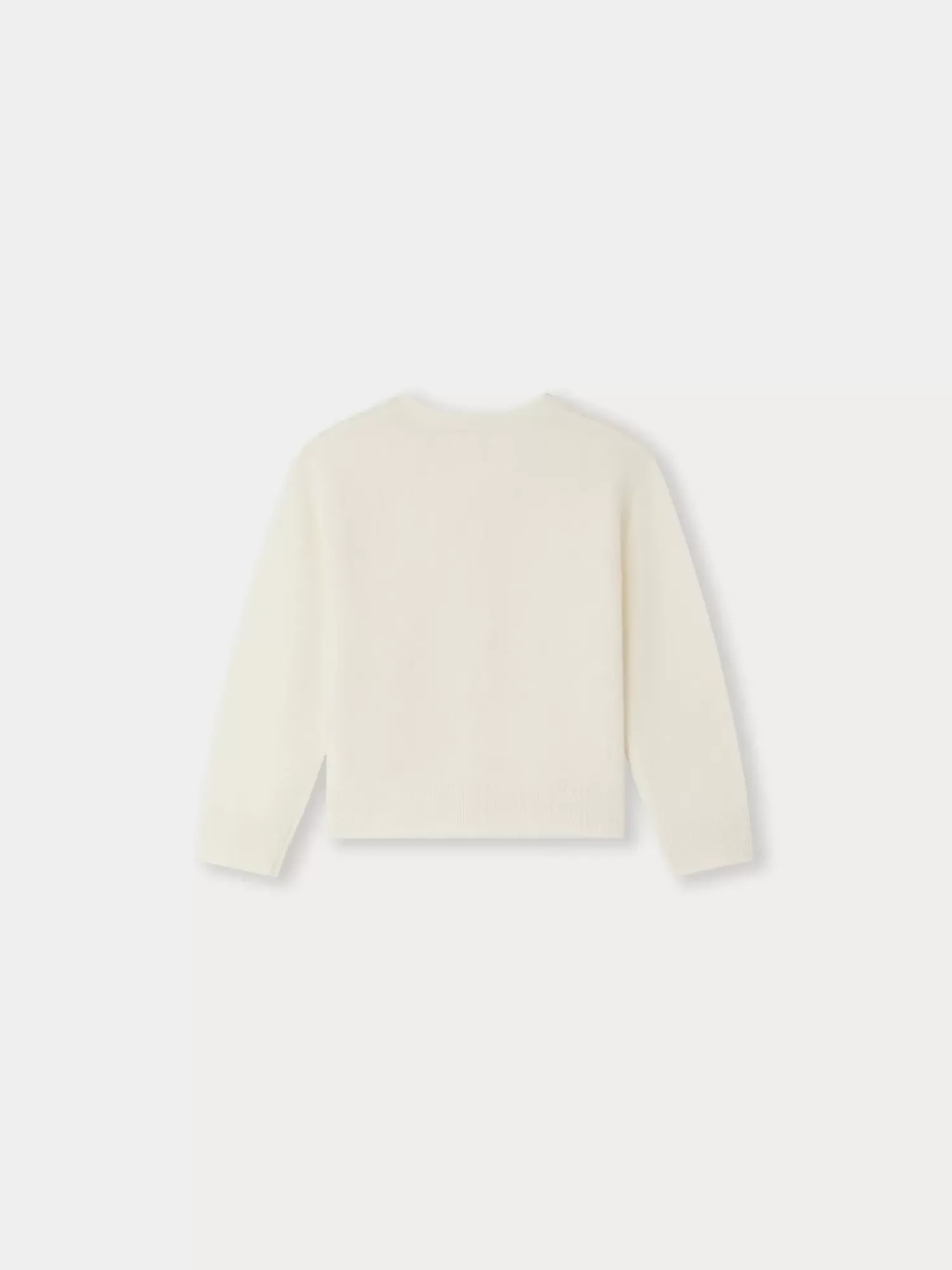 Made From Super Fine Cashmere, This V-Neck, Long-Sleeved Divine Cardigan For Girls Is Embellished With Beads And Rhinestones On The Front. A Hand-Embroidered Cherry Made Of Beads And Rhinestones Adorns The Chest.