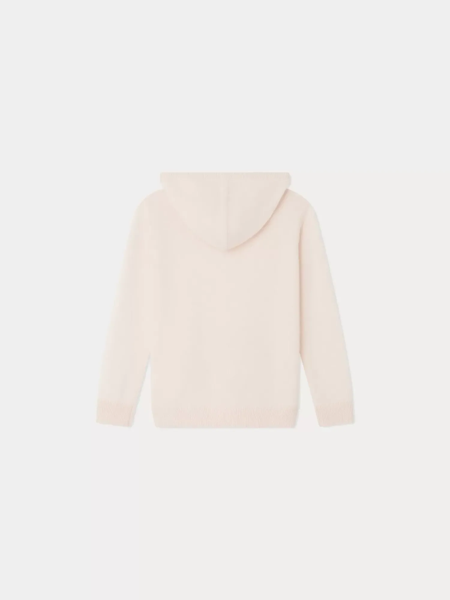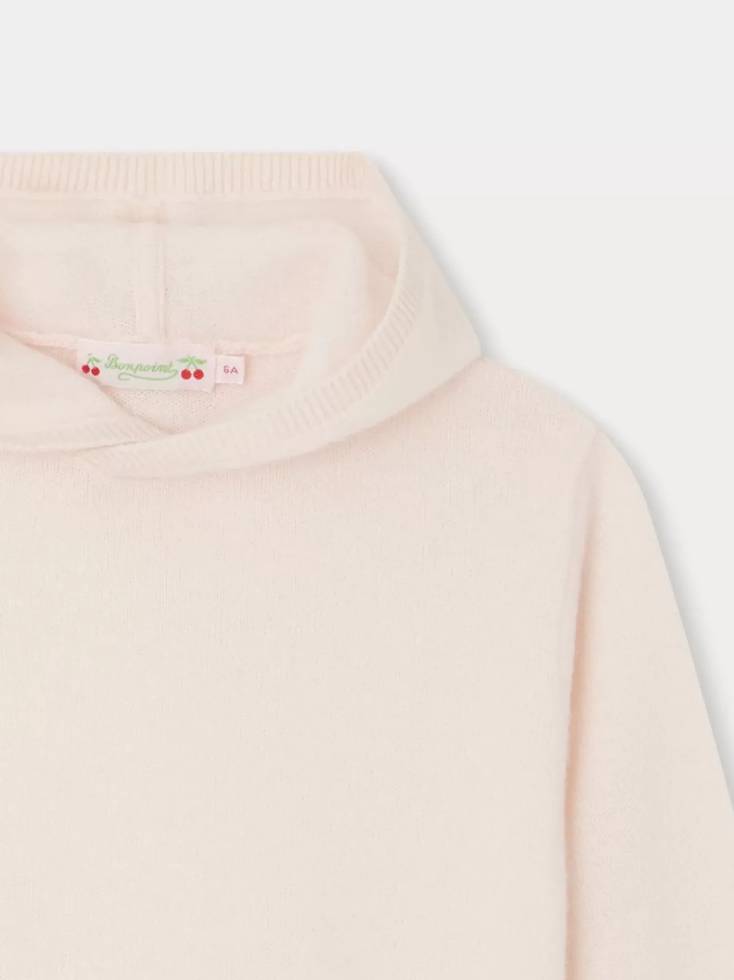 This Thin Cashmere Dodie Sweater For Girls In The Style Of A Hoodie Features A Kangaroo Pocket And Hood. A Tone-On-Tone Embroidered Cherry Adorns The Left Pocket.