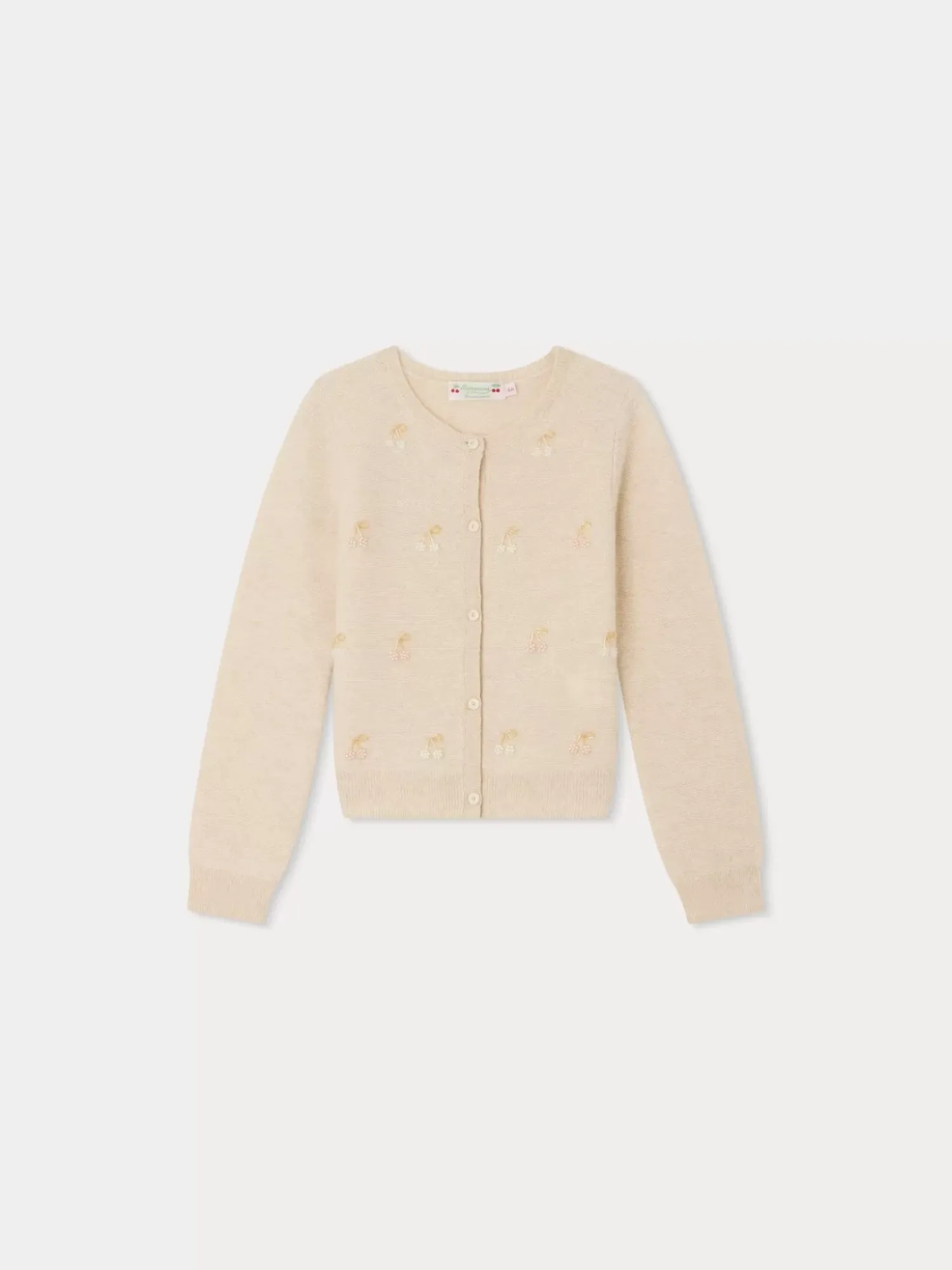 This Dounia Cardigan For Girls Features Adorable, Hand-Embroidered Beaded Cherries On The Front, Making It Perfect For A Special Occasion. It Has A Tone-On-Tone Button Fastening.