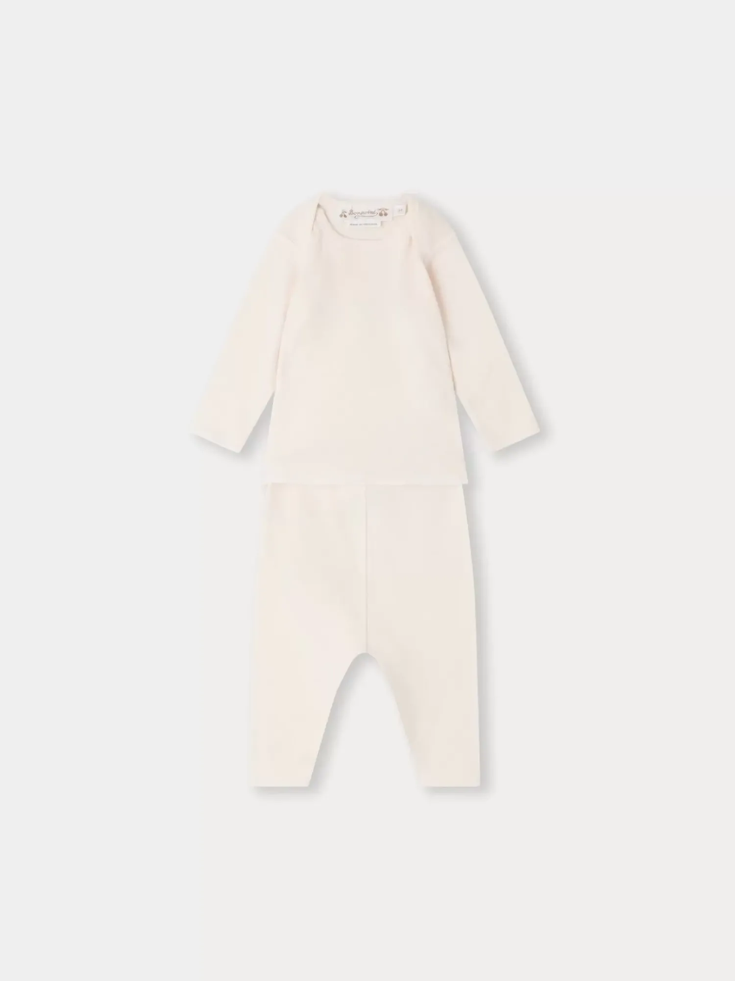 L’Ensemble Fabricota Pour Bébé Se Caractérise Par L’Extrême Douceur De Sa Matière Côtelée Mêlant Coton Et Cachemire. Le Haut De Ce Modèle Convenant Dès La Naissance Se Dote D’Emmanchures Américaines.