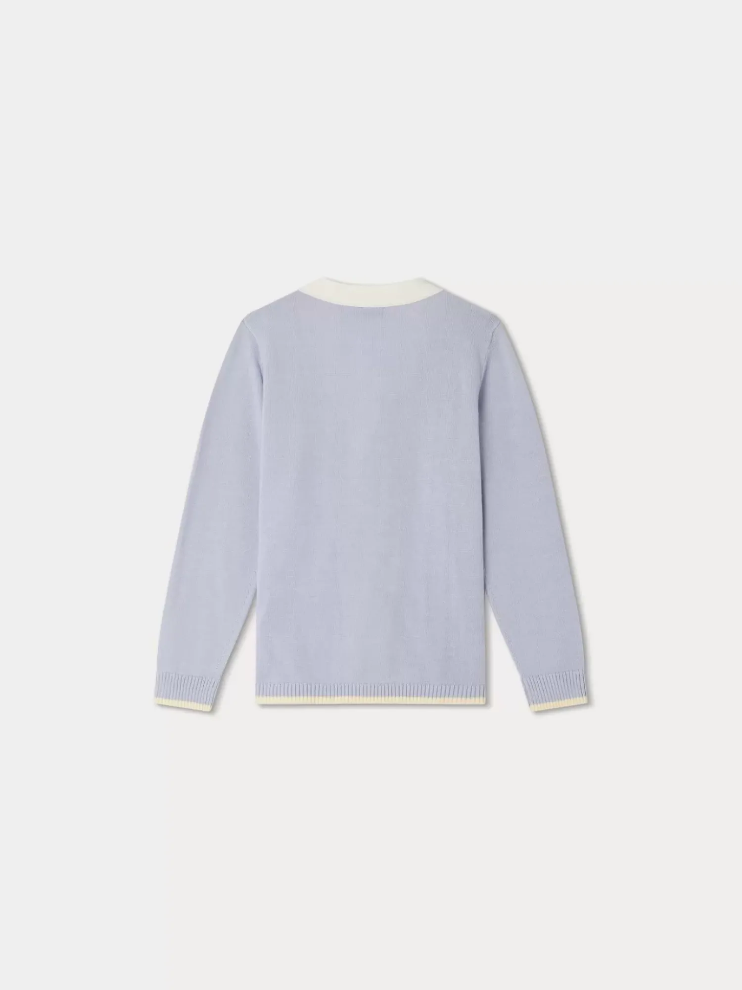 This Fabiano Boys’ Cardigan Features An Elegant V Neck And Is Made Of Two-Tone Organic Cotton Material. Bonpoint Logo Embroidery Decorates The Front.