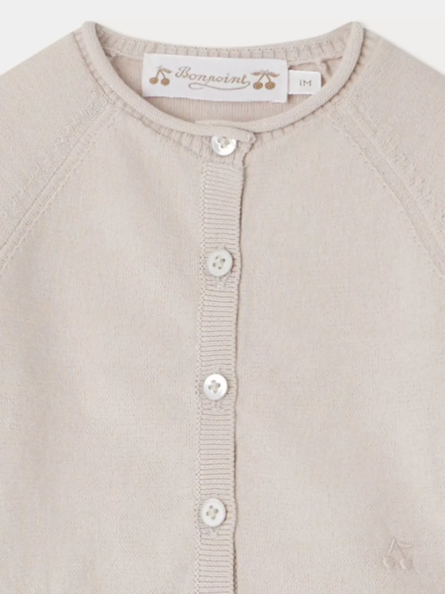 The Fadi Cardigan Envelopes Babies In Softness From Birth Onwards, Thanks To Its Ultra-Soft Cotton Knit. The Crew Neck Has Wide Ribbing And Eye-Catching Rolled Detailing.