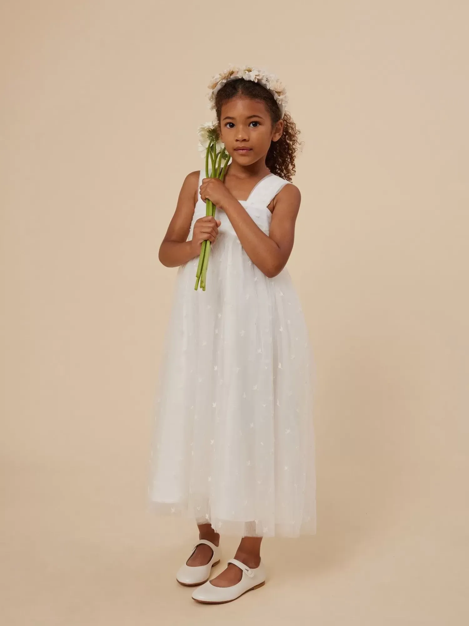 Your Little One Can Dress To The Nines For Special Occasions With This Tulle Fantasy Long Embroidered Dress For Girls. It Fastens With A Jeweled Button At The Back.