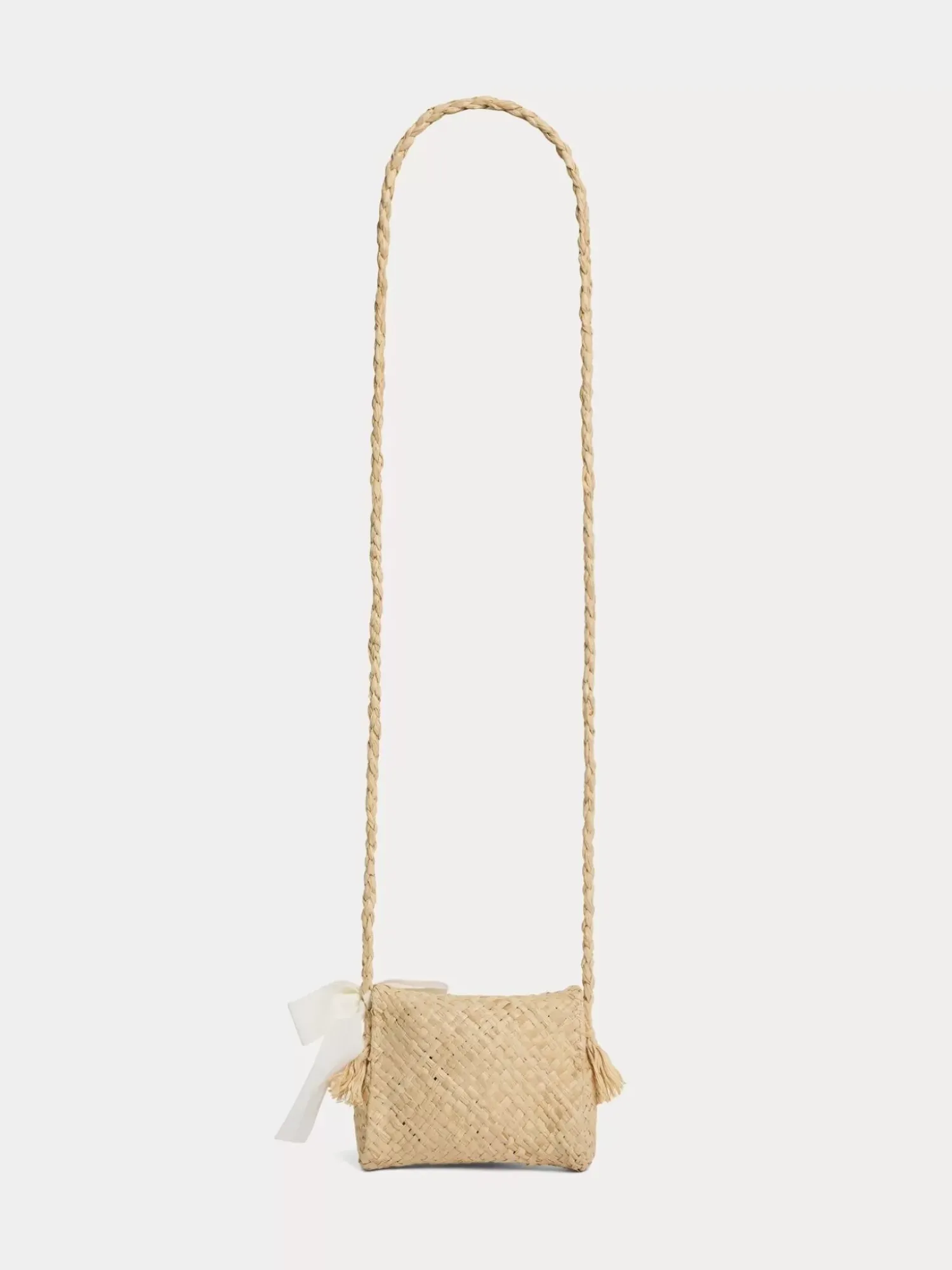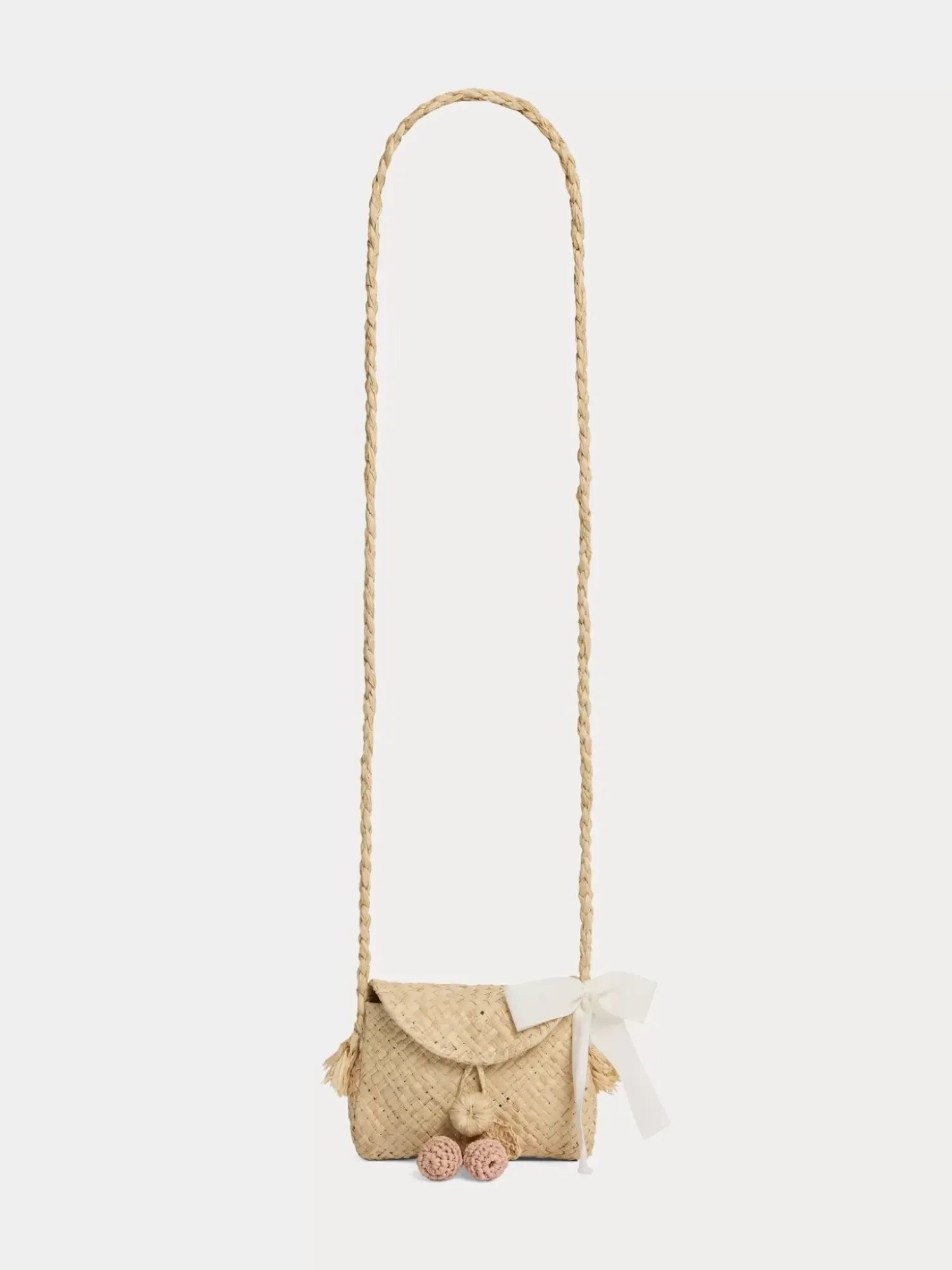 Made From Woven Natural Raffia Fibers, This Mini Feiza Special Occasion Bag For Girls Fastens With A Buttoned Flap Adorned With A 3D Bonpoint Cherry. The Long Strap Allows It To Be Worn Across The Body.
