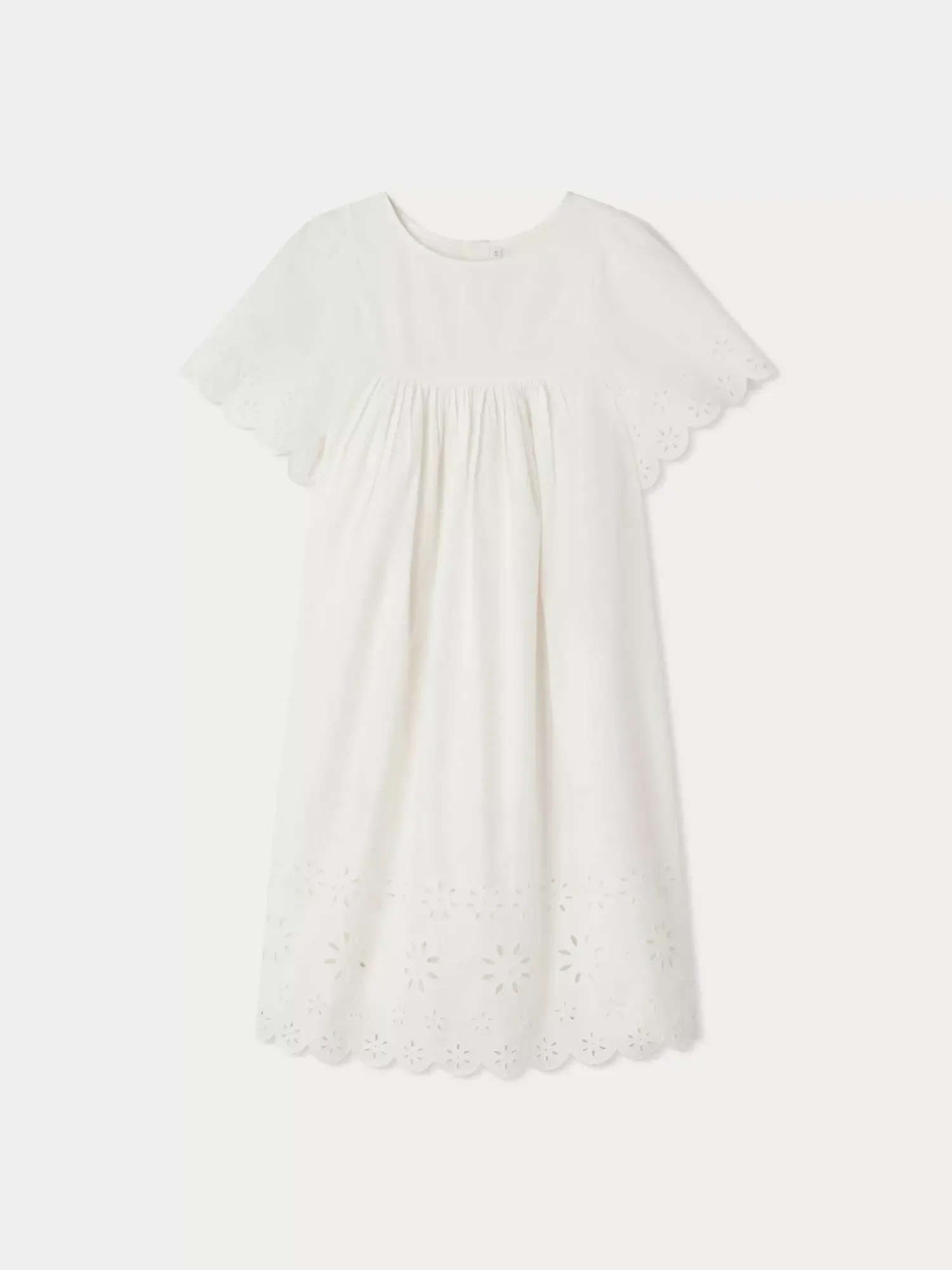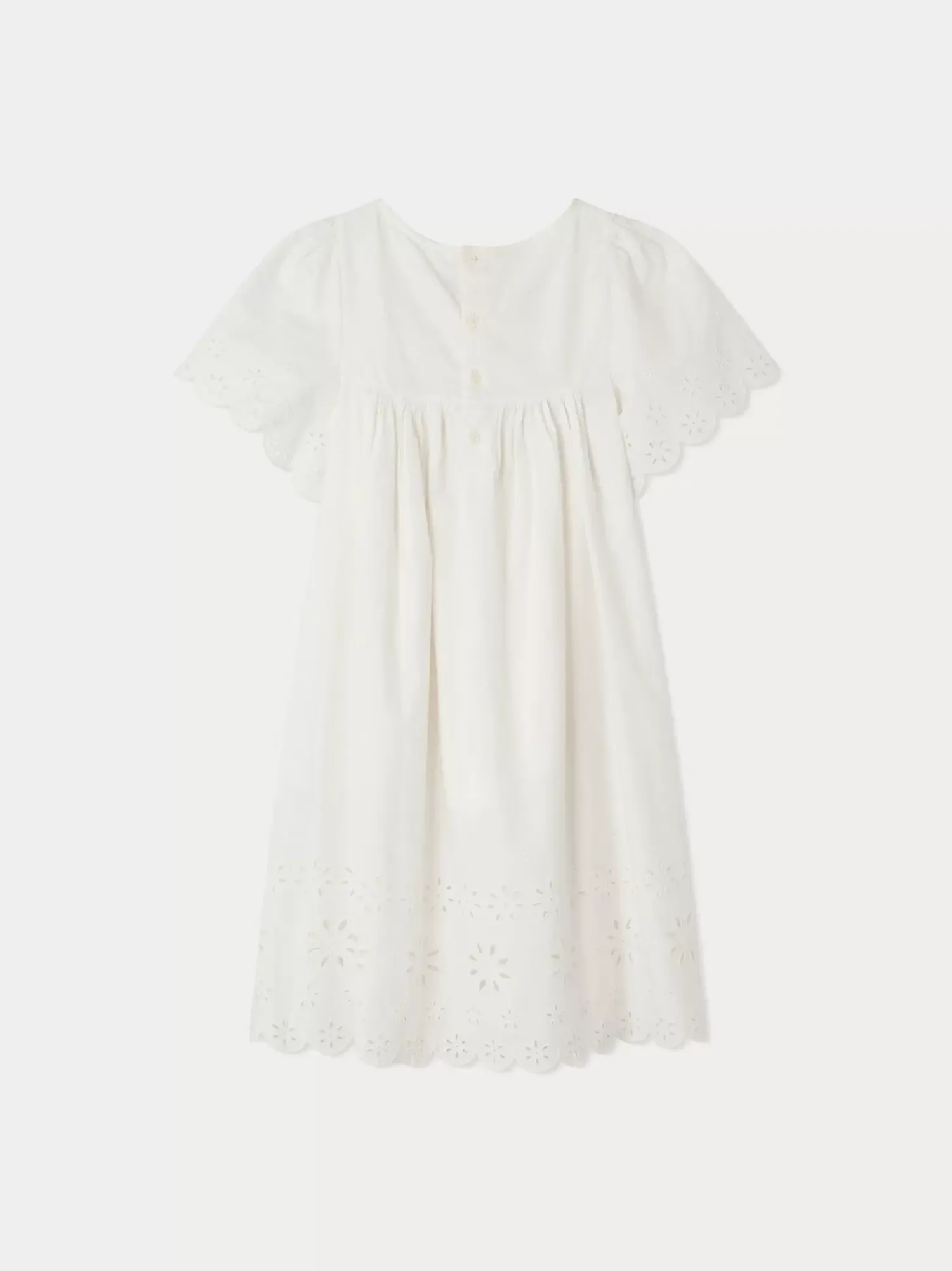 This Francesca Girls’ Dress Puts The Spotlight On Elegance With Its Broderie Anglaise At The Hem And Around The Edges Of The Sleeves. It Is Lined In Cotton Voile.