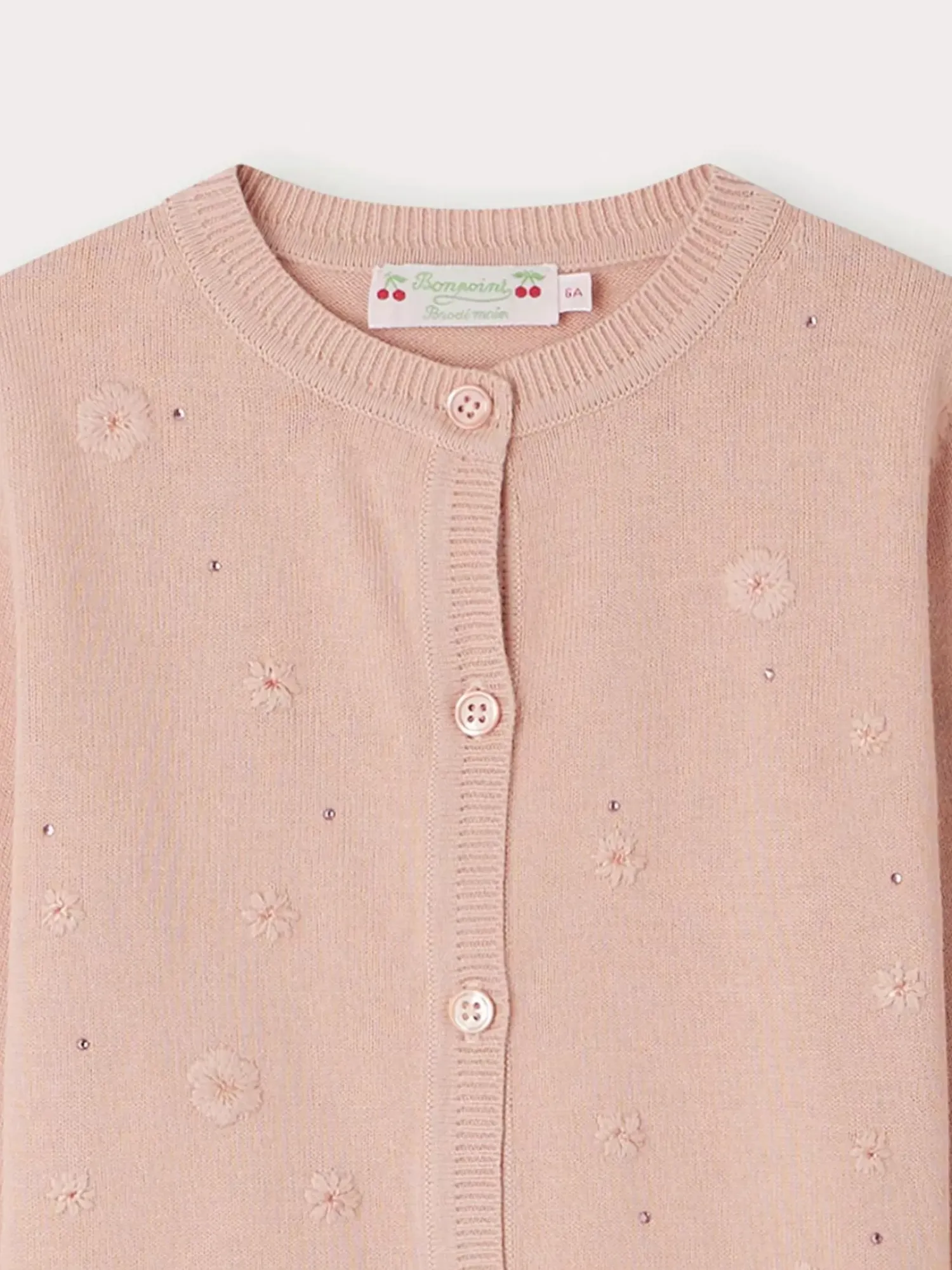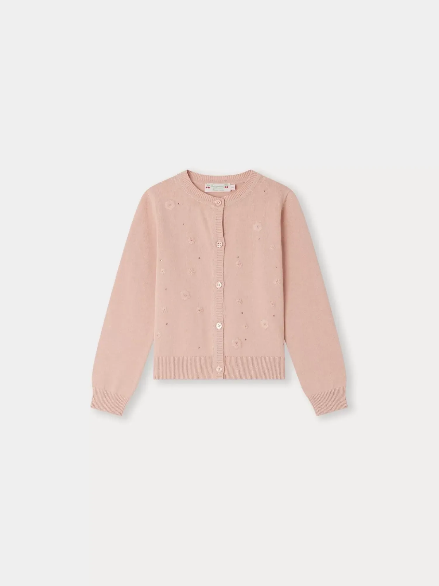 Adorned With Tone-On-Tone Embroidered Flowers And Rhinestones On The Front, This Certified Organic Cotton Francille Cardigan For Girls Is Perfect For A Special Occasion Outfit. It Has A Crew Neck And Long Sleeves.