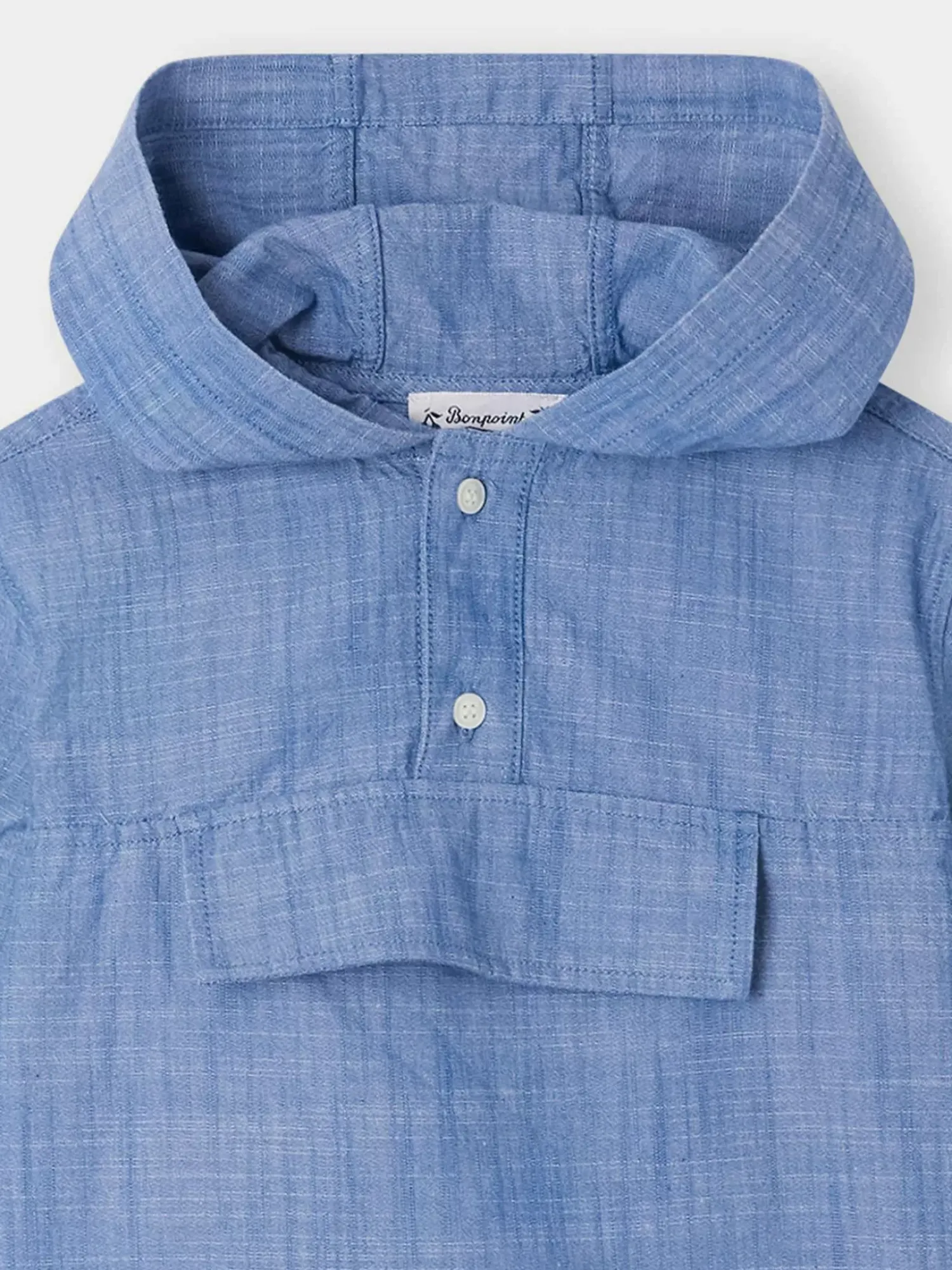 This Franck Certified Organic Cotton Shirt For Boys Stands Out Thanks To Its Large Central Flap Pocket And Hood. It Fastens With Buttons At The Neckline.