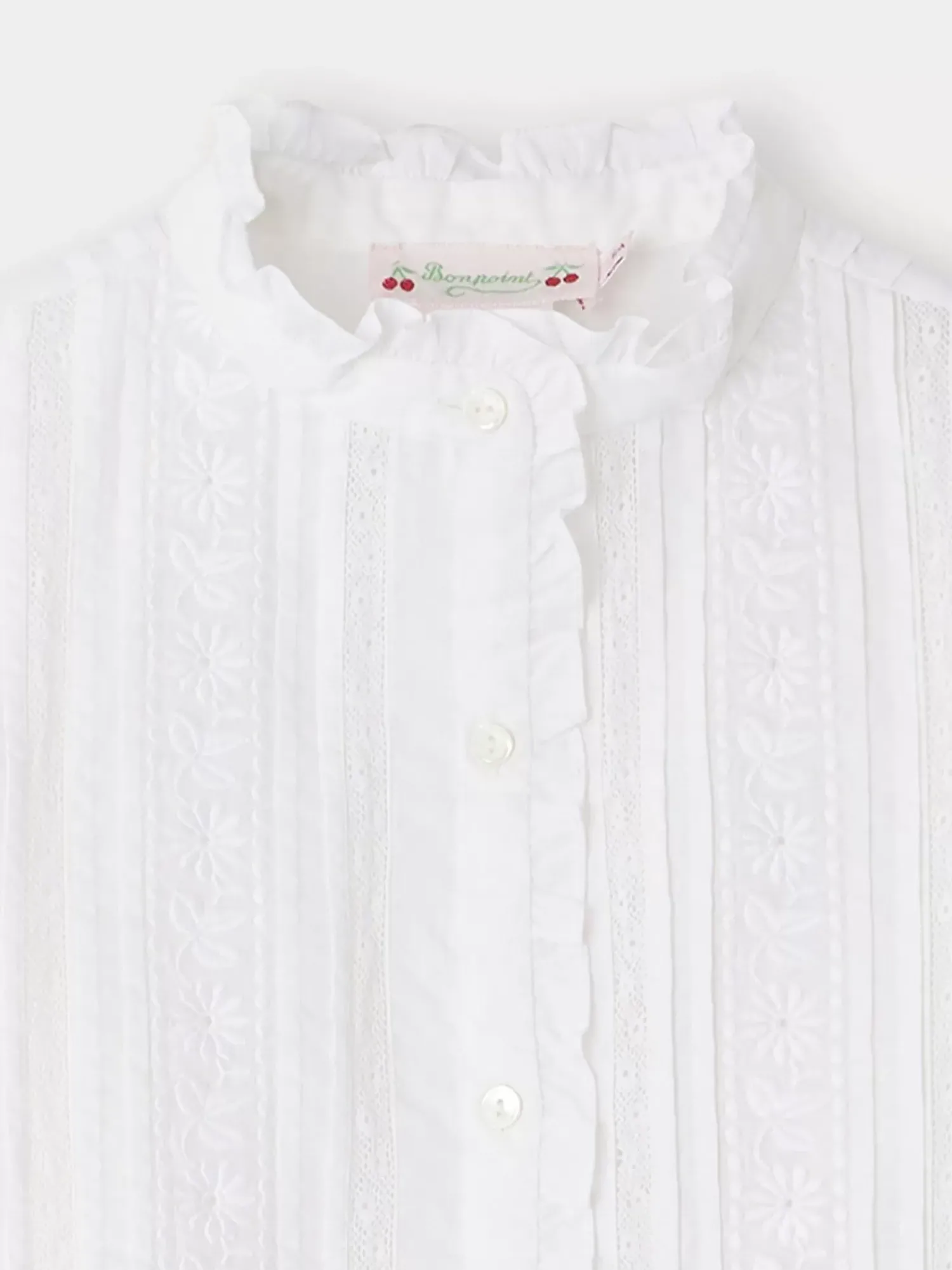 Organic Cotton Voile Fabric Makes The Freedom Shirt For Girls Very Pleasant To Wear. Romantic Embroidered Details And A Set Of Vertical Flat Pleats Delicately Adorn The Front.