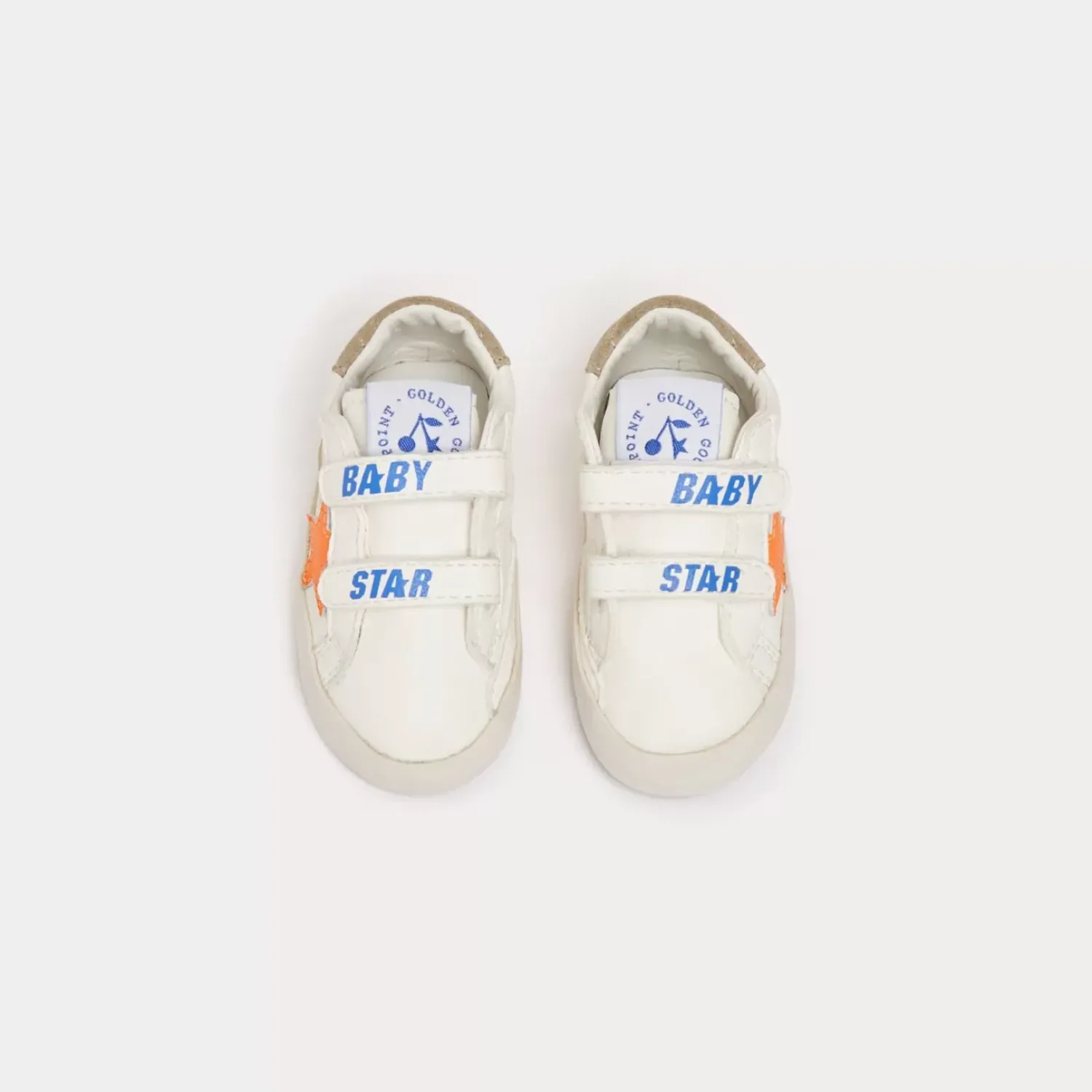 A Collaboration Between Golden Goose And Bonpoint, These Soft Bbstar Sneakers For Baby Feature Two Hook-And-Loop Closures. The Low-Tops Come Adorned With A Star And Contrasting Logos.