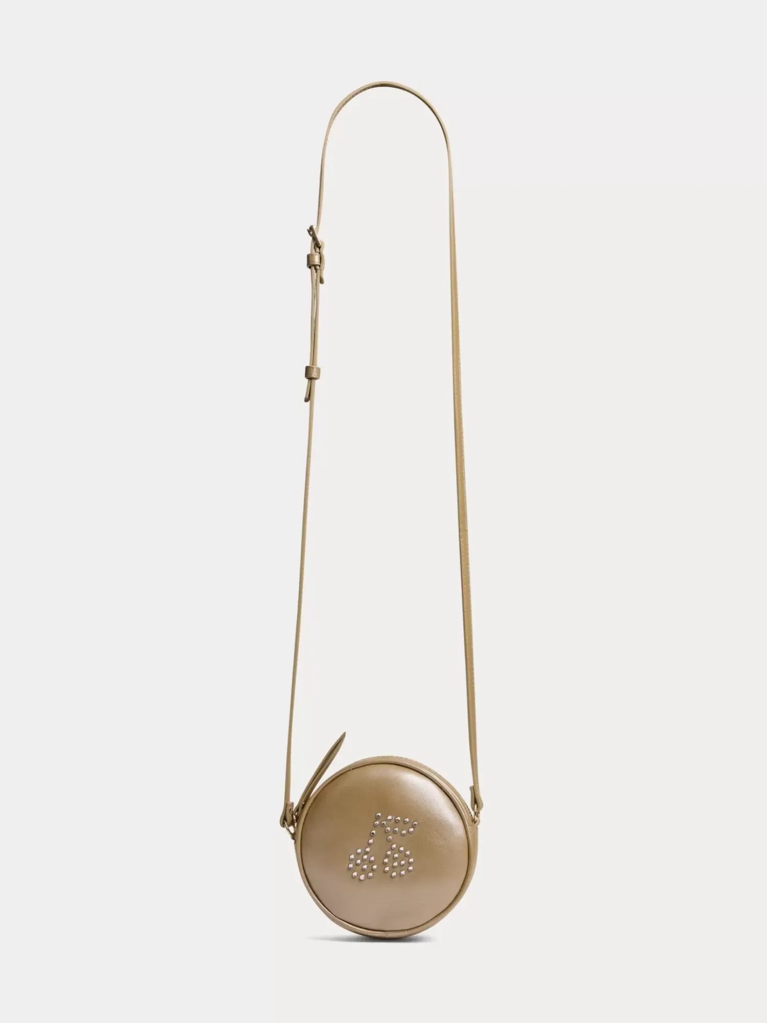 The Leather Gomette Bag For Girls Combines A Contemporary Look With Practicality Thanks To Its Round Shape. It Is Adorned With A Cherry Fashioned Out Of Metallic Studs.