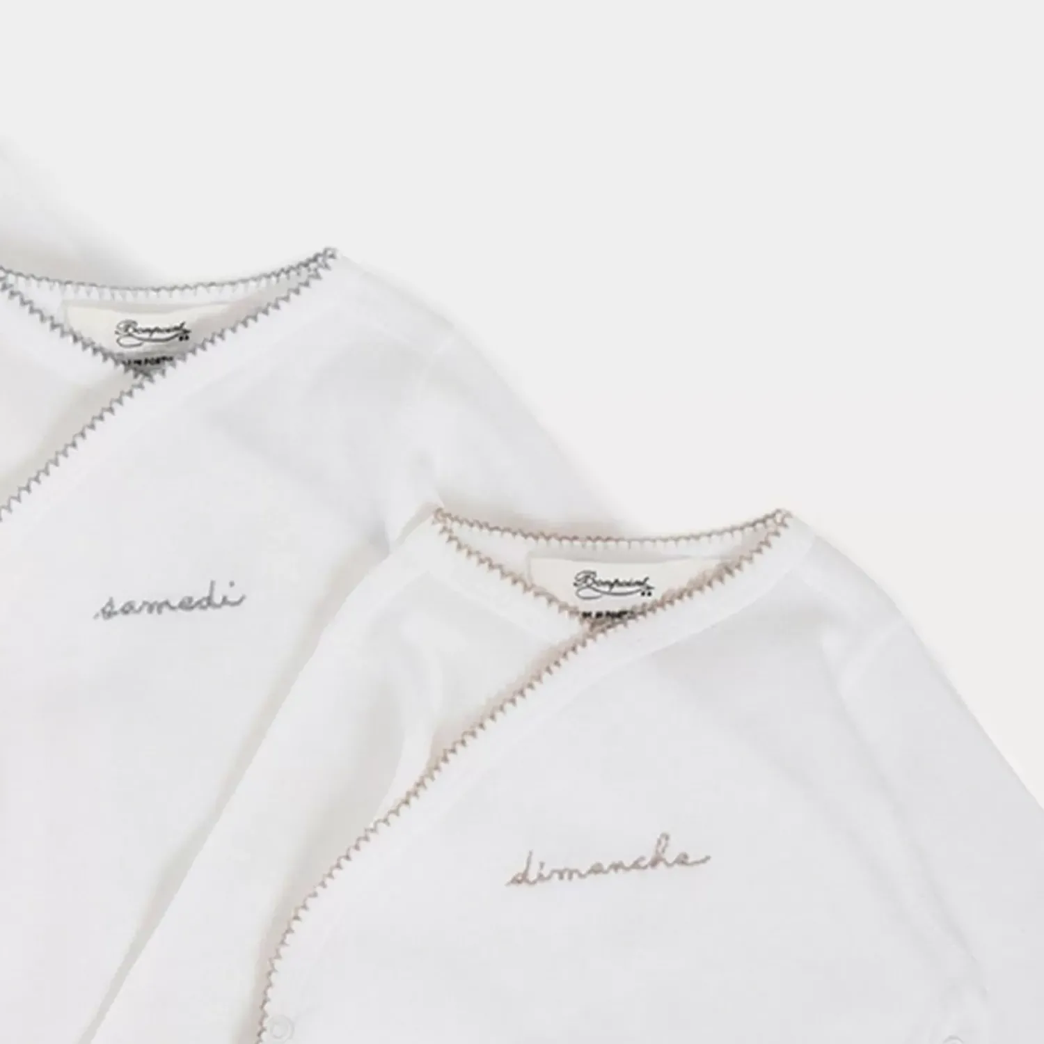 Plan An Outfit For Each Day Of The Week With This Lot Of 7 Bodysuits. Each Of Them Is Distinguished By Embroidery Of Different Colors. These Surplice Models Decorated With Topstitching Are Suitable For Newborns Onwards.
