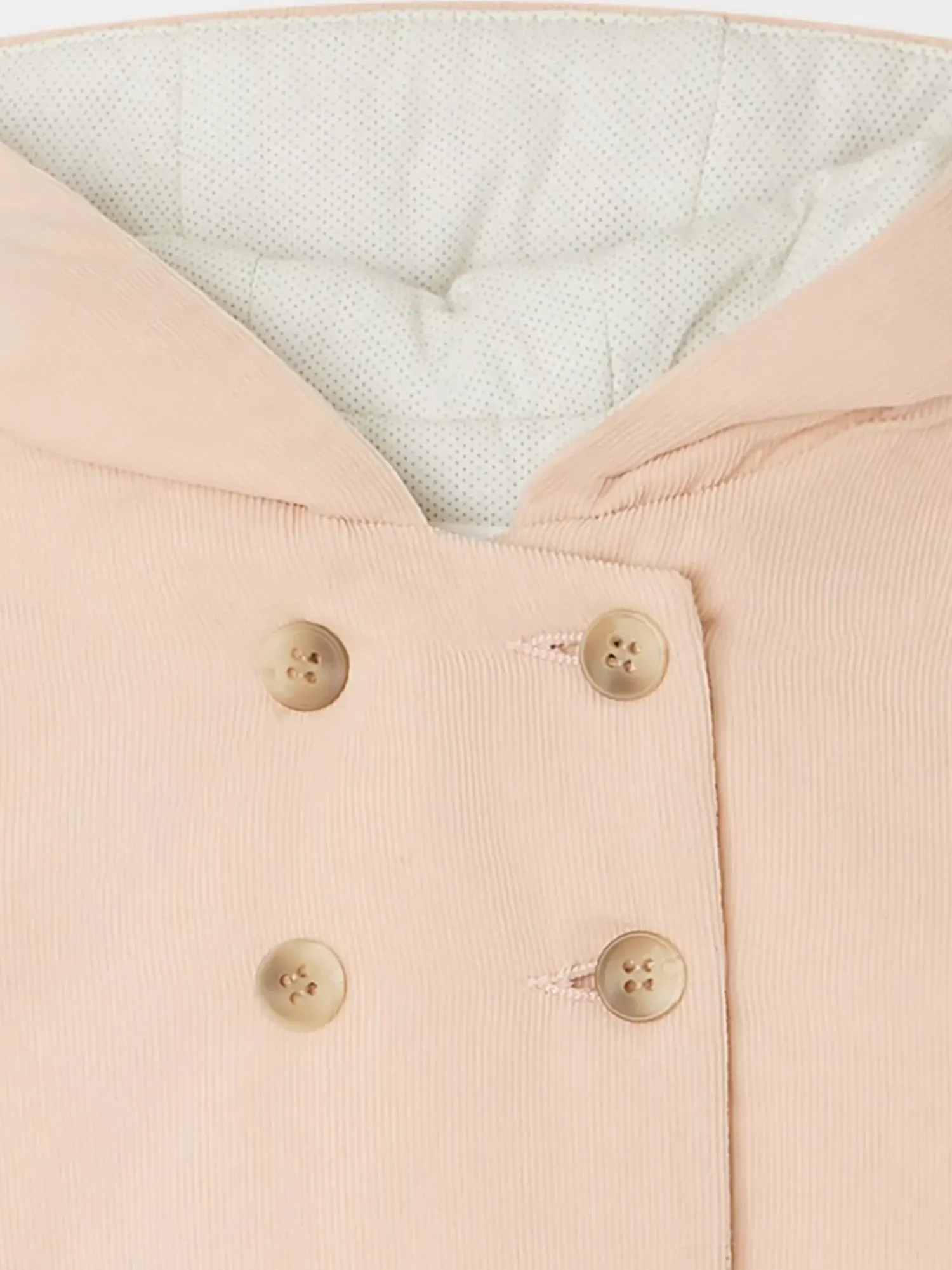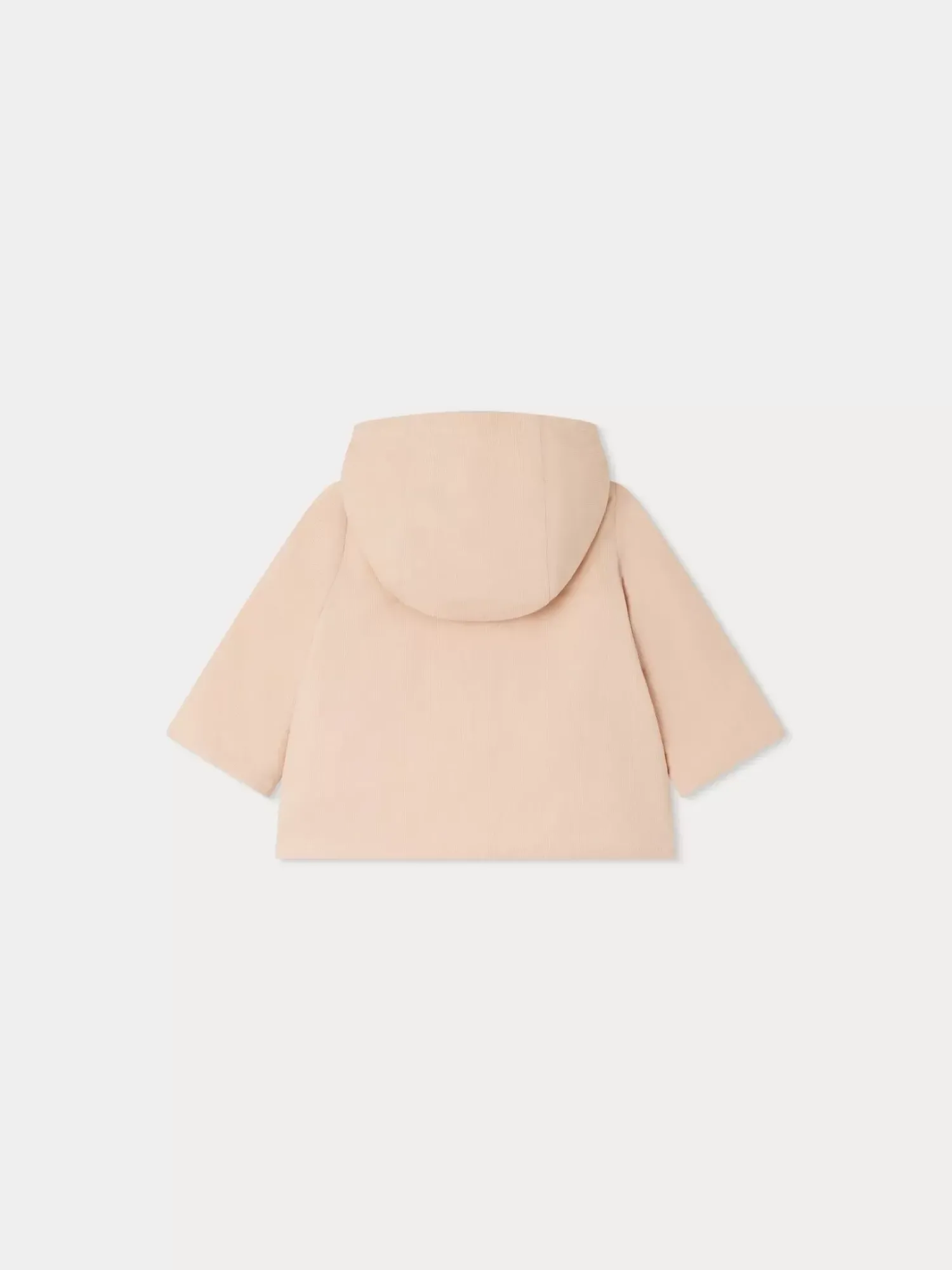 This Lined Misha Jacket For Babies Is Made From Solid-Color Needlecord Fabric. The Double-Breasted Design Features A Fixed Hood And Two Patch Pockets.