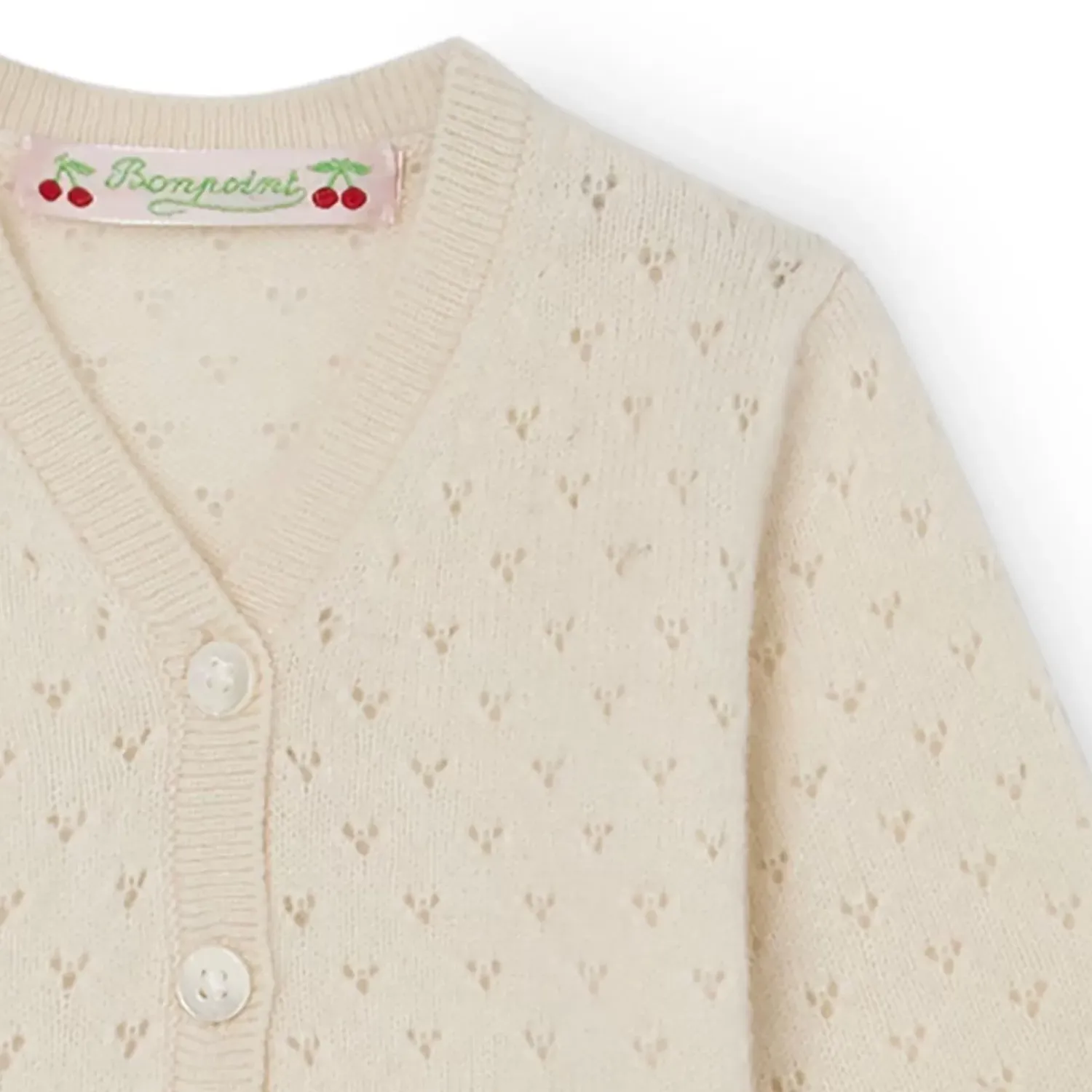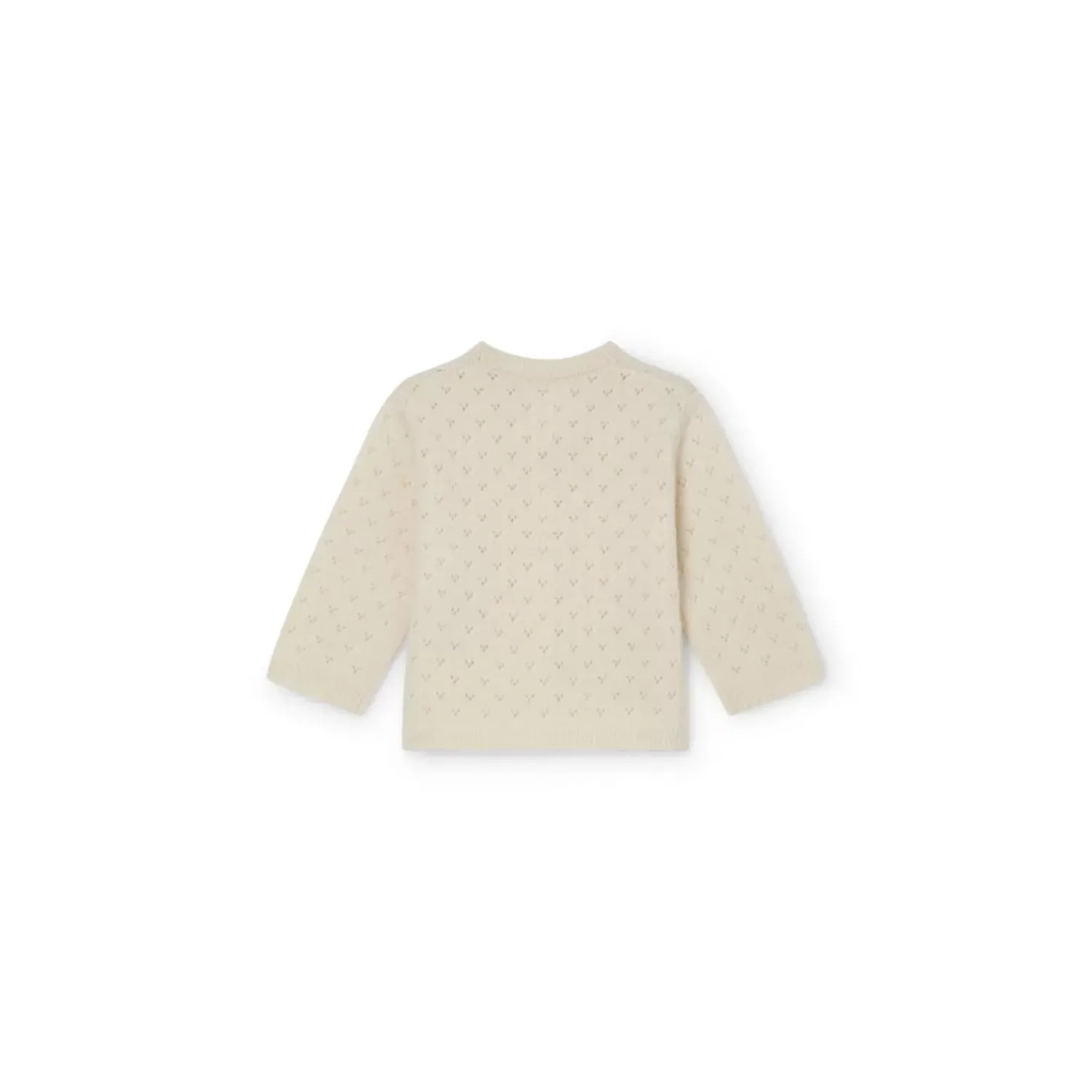 The Azia Babies’ Cardigan Features A Subtle Openwork Design All Over The Piece. This Solid-Colored Design Has A Straight Cut.