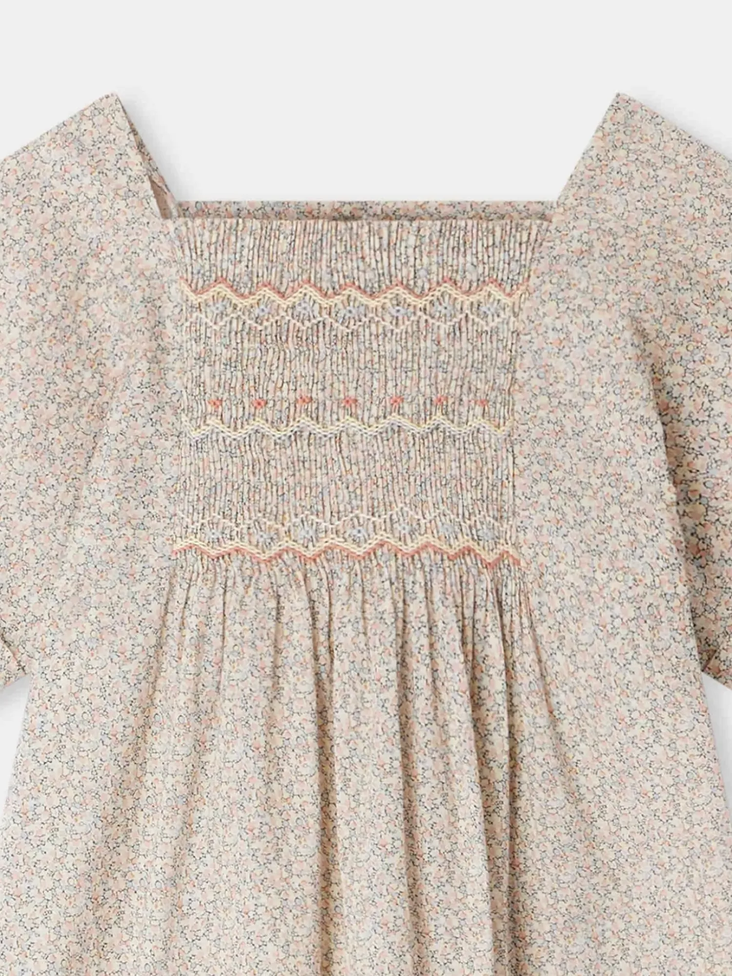 This Paysanne Certified Organic Cotton Girls’ Dress Shows Off Elegant Hand-Embroidered Smocking On The Chest. It Is Made Of Fun, Fresh Liberty Fabric With A Bohemian Motif.