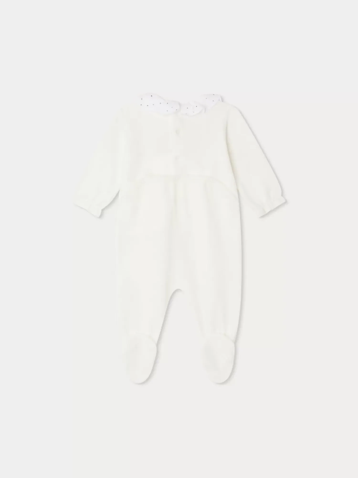 Adapté Dès La Naissance, Le Pyjama Tijane Pour Bébé Est Réalisé Dans Un Tissu Éponge Velours Très Doux. Sa Ravissante Collerette Contrastante Est Brodée De Pois Colorés.