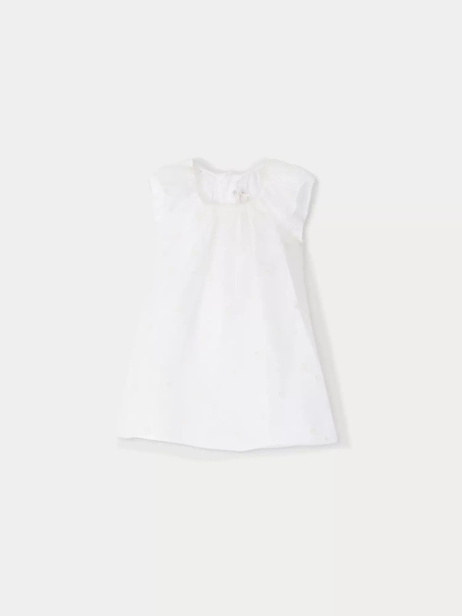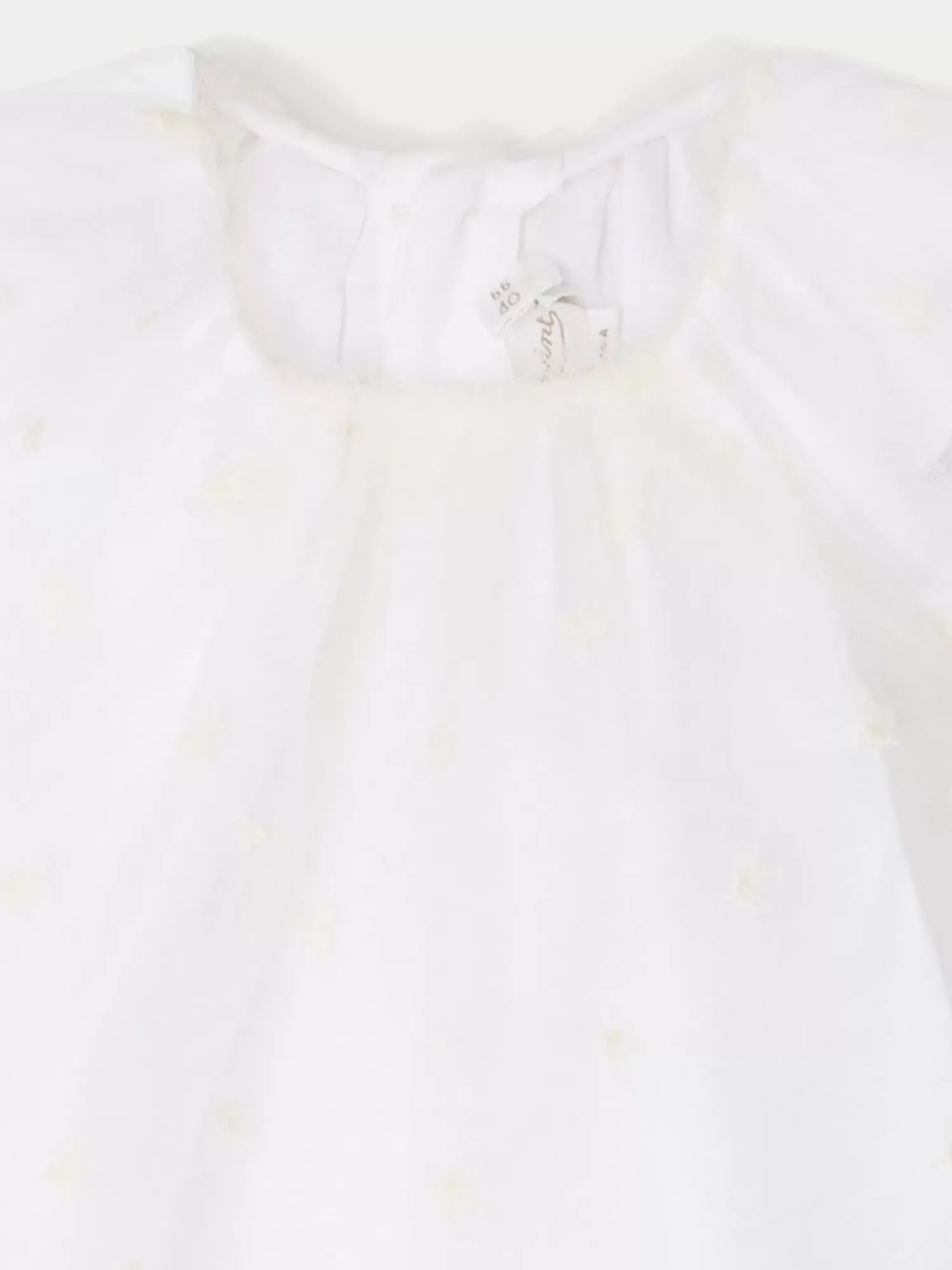 Cette Robe Pour Bébé Nuage Est Ravissante Avec Son Tulle Brodé. Idéale Pour Composer Une Tenue Élégante Lors D’Une Occasion Spéciale, Elle Comporte Un Petit Volant Au Niveau De L’Encolure.