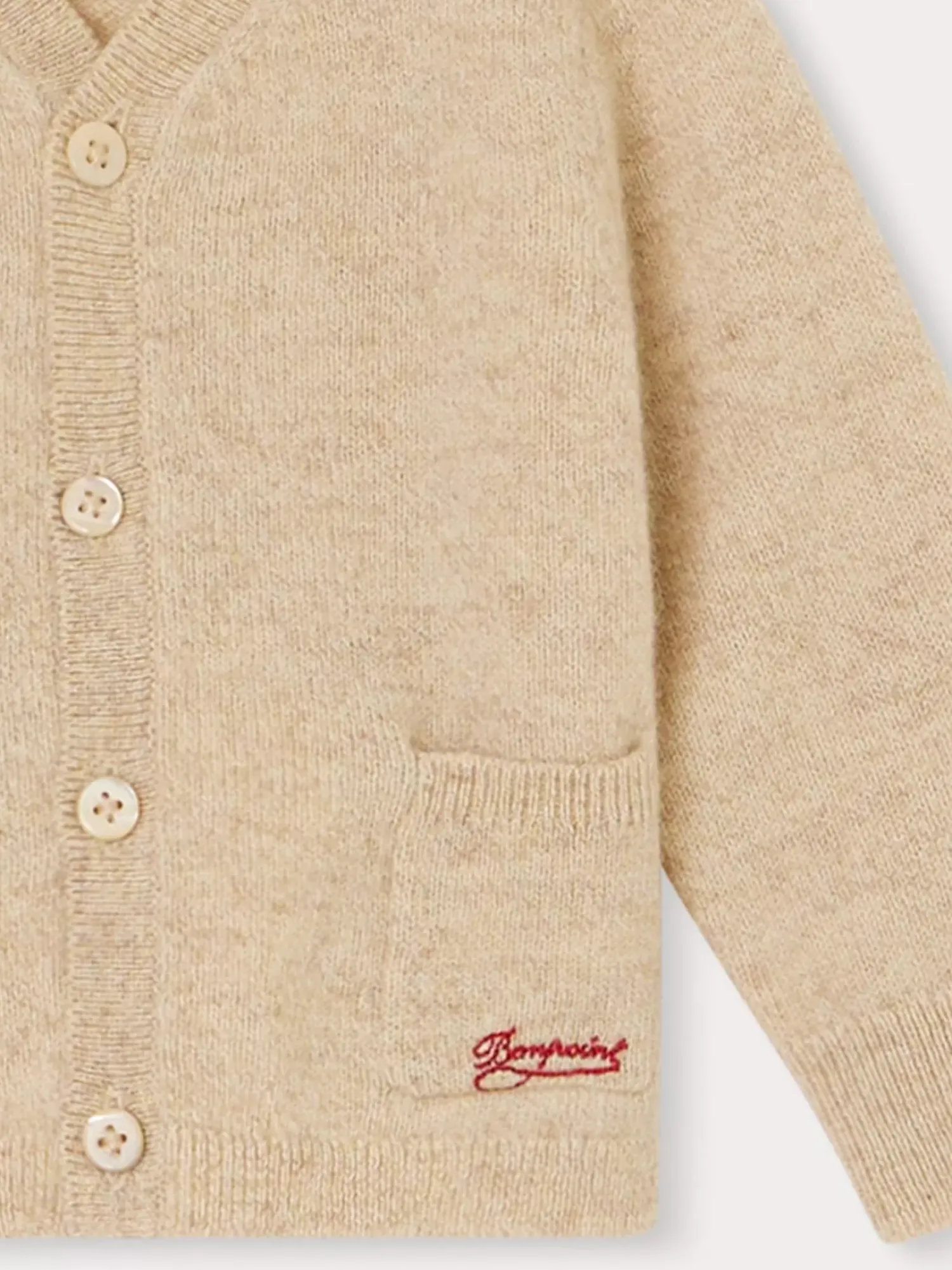This Tahiel Cardigan For Babies Is An Iconic Bonpoint Garment. It Is Made From Woolmark Certified Wool And Is Enhanced By A Contrasting Bonpoint Logo On The Front Pocket.