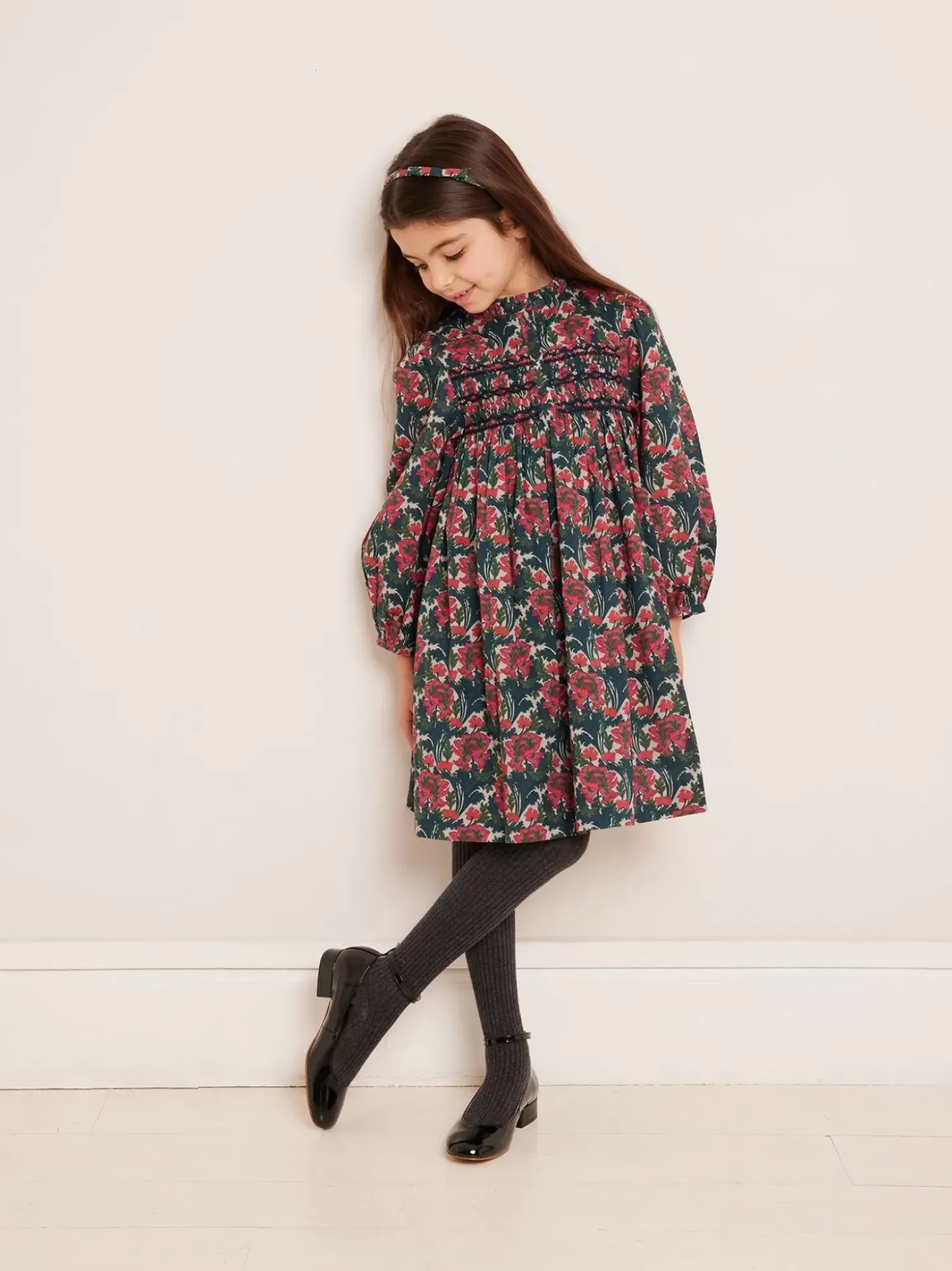 Girls Will Love The Comfortable Loose Fit Of This Tamsin Smocked Dress, As Well As The Hand-Embroidered Smocking Across The Chest. It Is Made From Liberty Fabric.