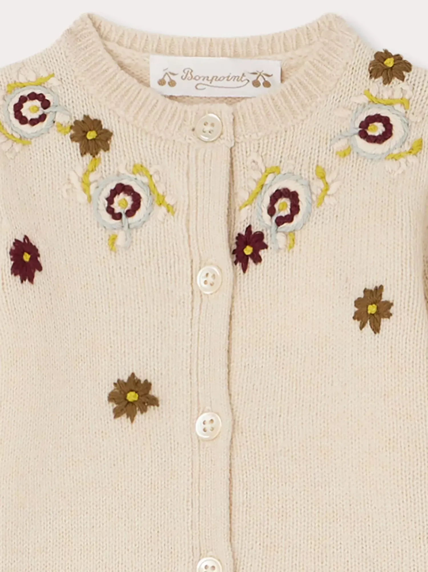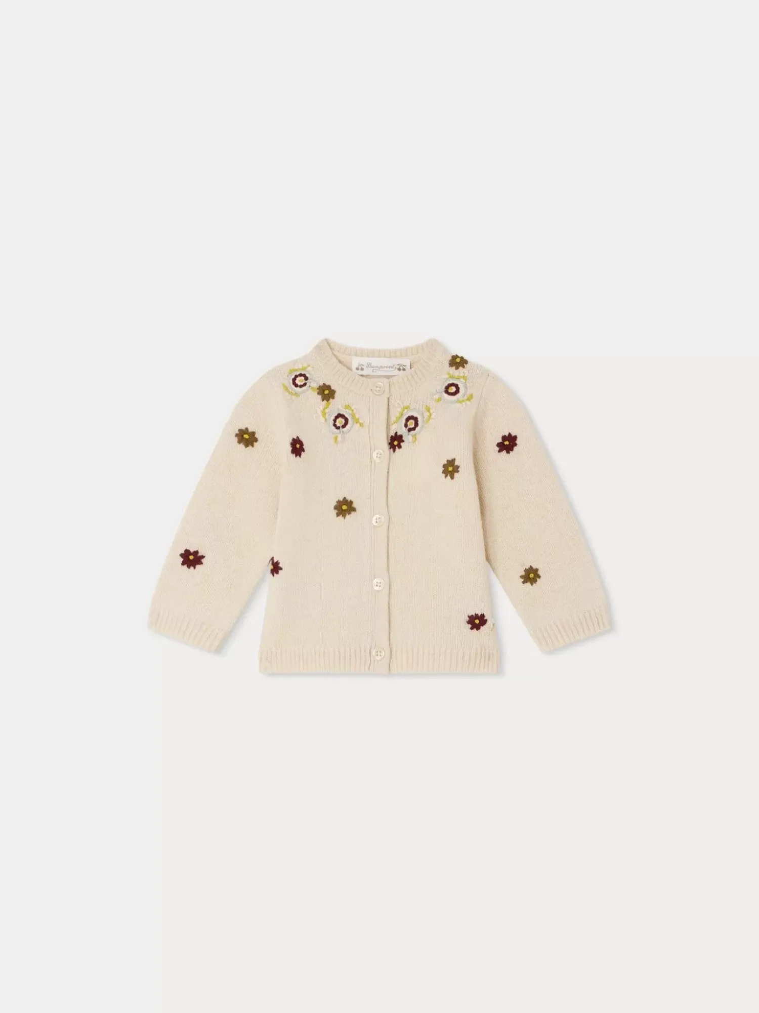 This Telnie Cardigan For Baby Is Adorned With Hand-Embroidered Floral Appliqués. Made From Wool, It Has A Round Neck And Long Sleeves.