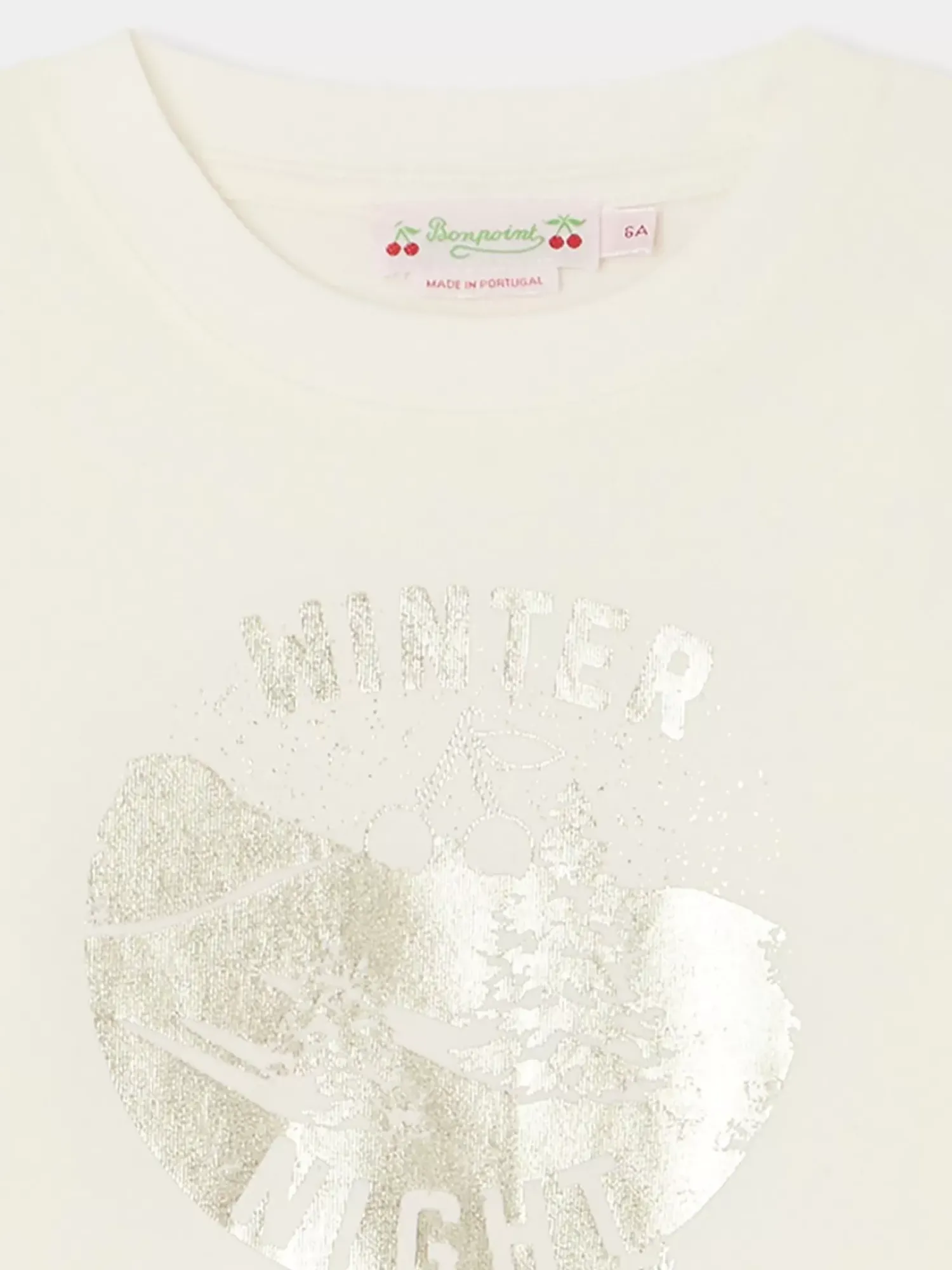 This Theia T-Shirt For Girls Is Made From An Especially Soft Organic Cotton Jersey. It Features A Distinctive, Circular Metallic Silver Print On The Front With The Bonpoint Cherry At Its Center.