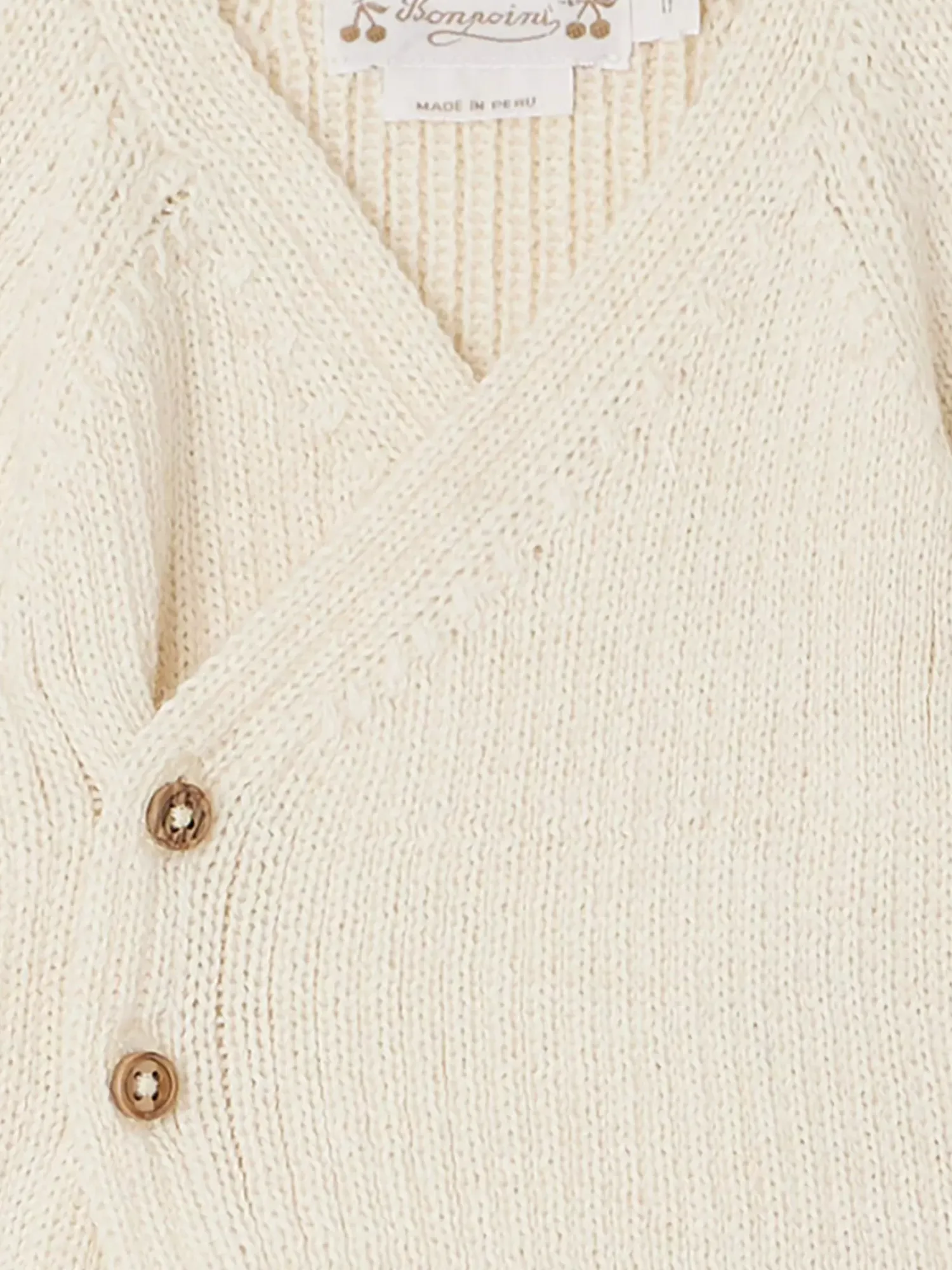 This Theva Set For Babies Is Knitted From 100% Soft, Comfortable Alpaca Wool. The Top Has A Crossover Neckline Fastened By Two Wood-Effect Buttons At The Front.