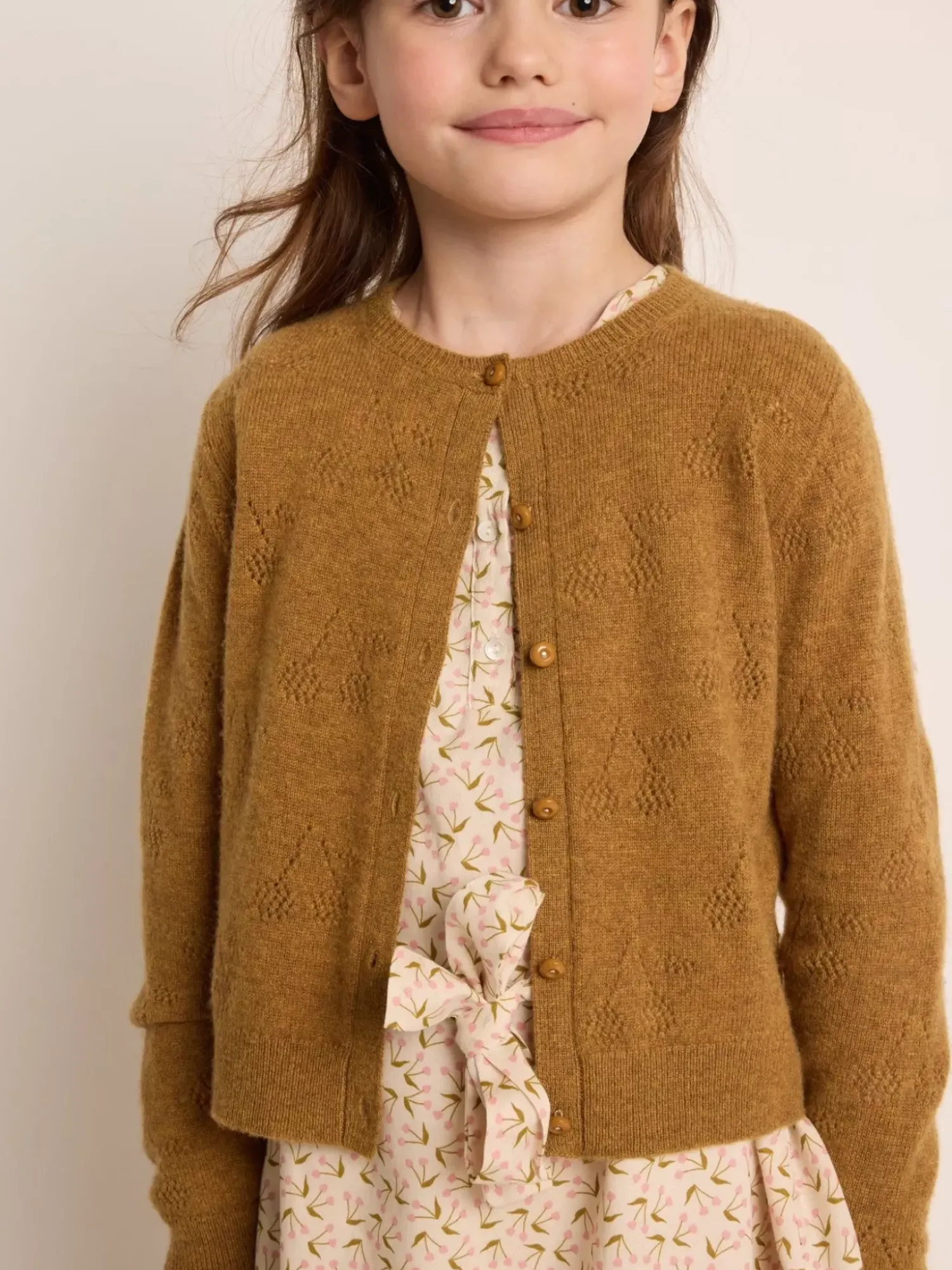 This Thindra Cardigan For Girls Features A Delicate Allover Openwork Pattern That Revisits The Iconic Cherries. The Cashmere Fabric Guarantees Softness.